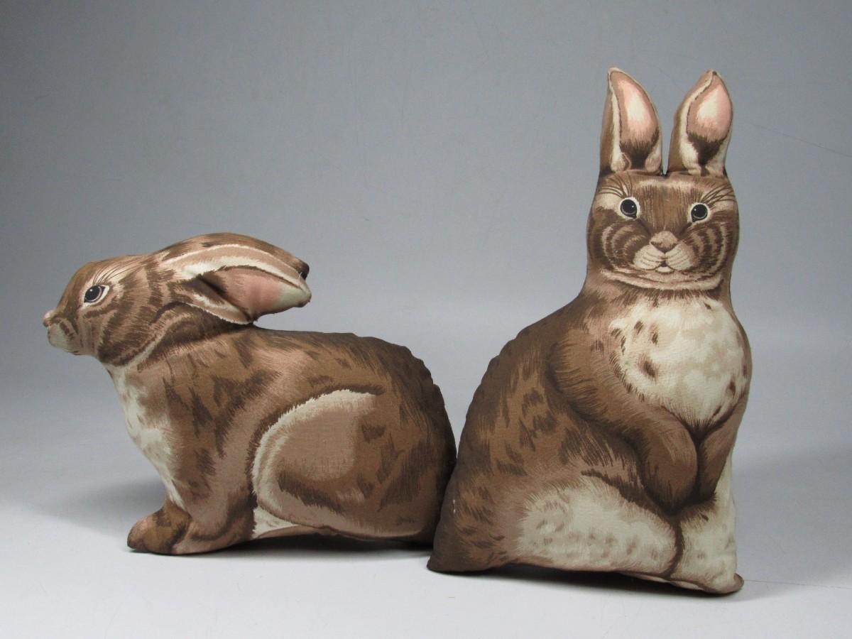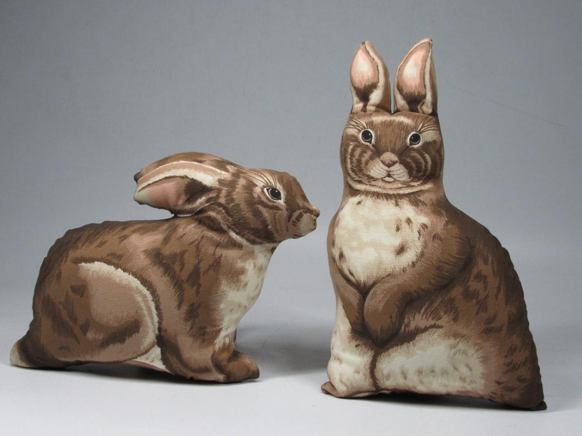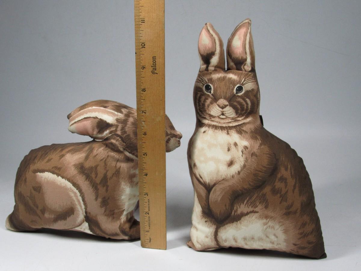 Brown Bunny Rabbit Pair Stuffed Soft Pillow Children Room Rustic Decor Handcrafted