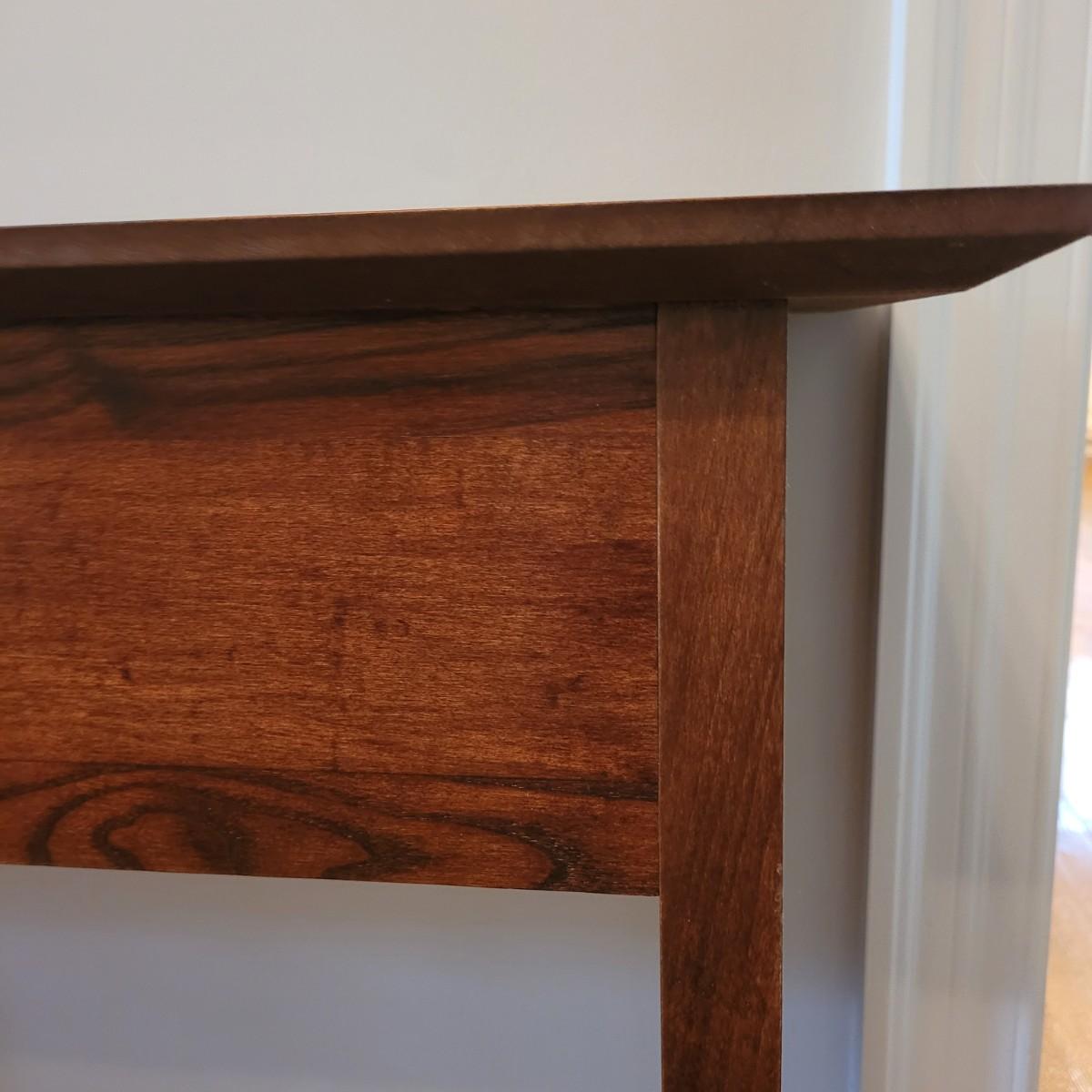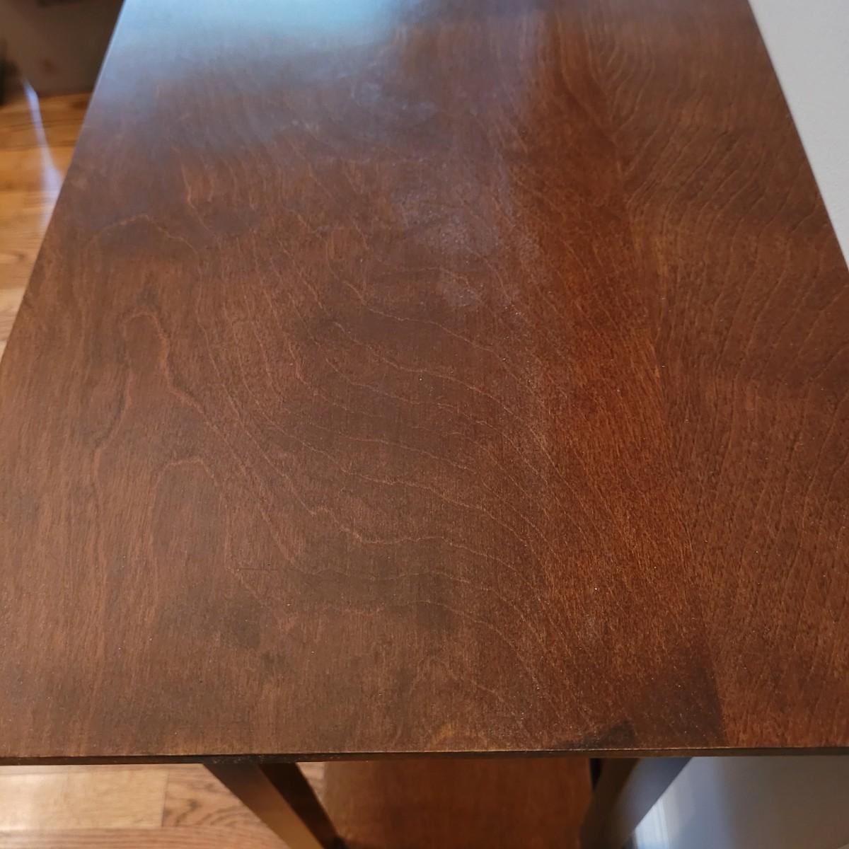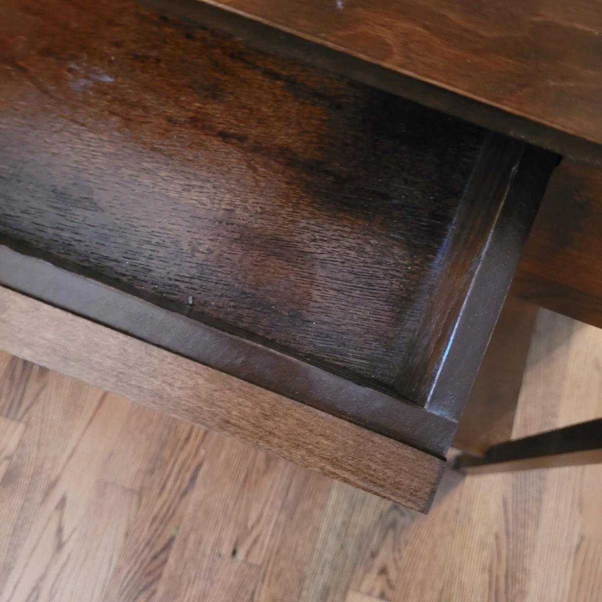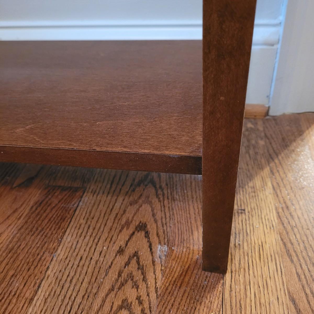 This wooden console table has a small single central drawer and a bottom shelf for extra display and storage. Measures approximately 42” x 13” x 29”H. Please note the slight damage to one corner. Local pickup only. Winning bidder must bring assistance to help move and load this item due to its weight and size.