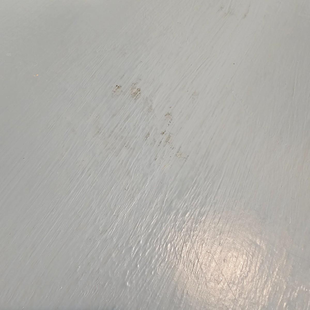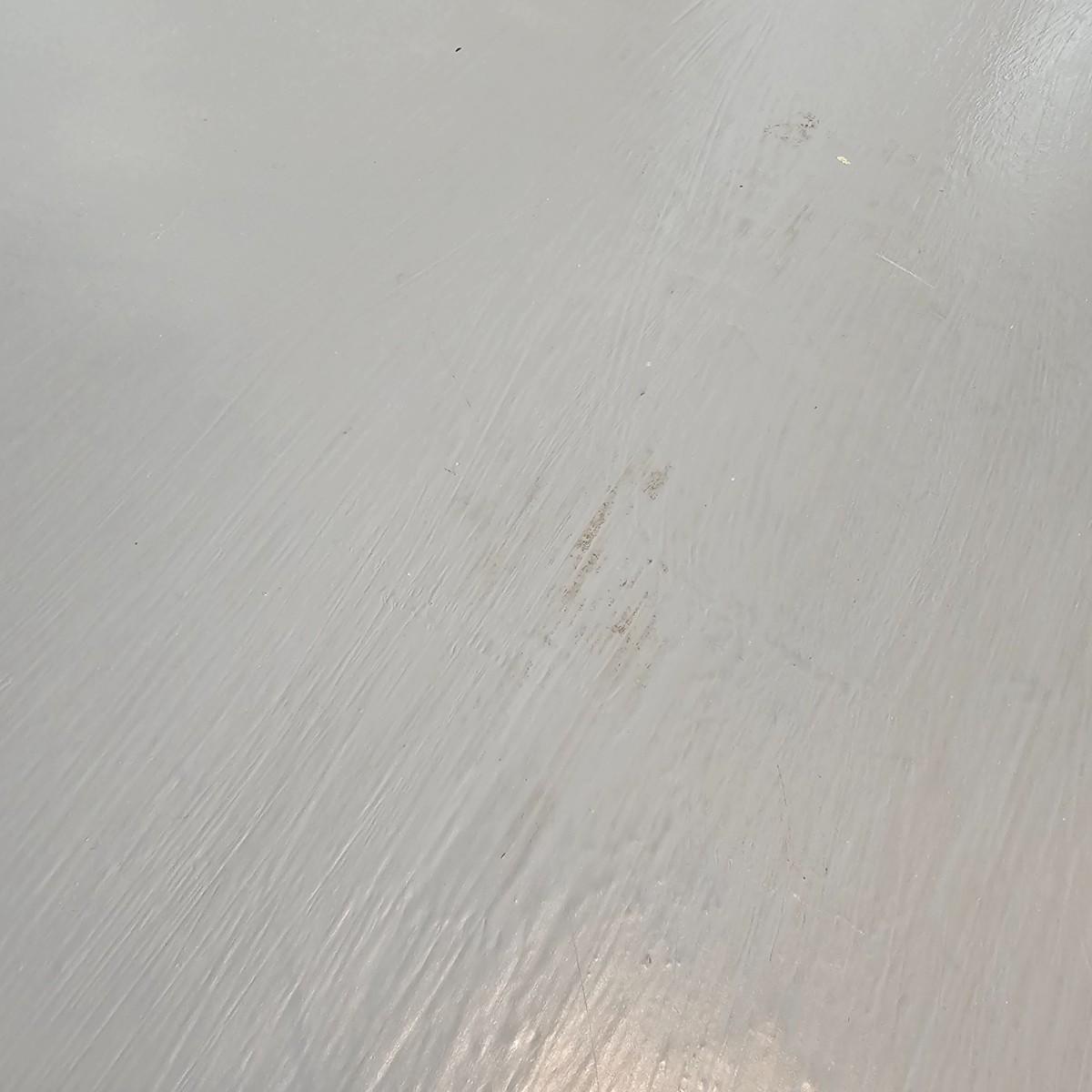 This wooden console table has one drawer with a narrow shelf underneath. Color is a medium grey. There are some light stains/marks down center of item. Table measures 18” x 41” x 30”H.