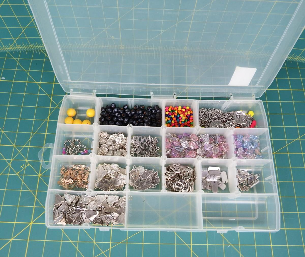 Container of Craft Beads & Charms