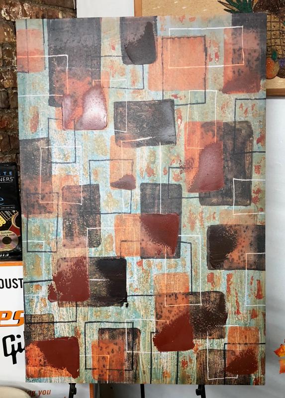 Excellent condition on this 36 x 24" abstract wall hanging...