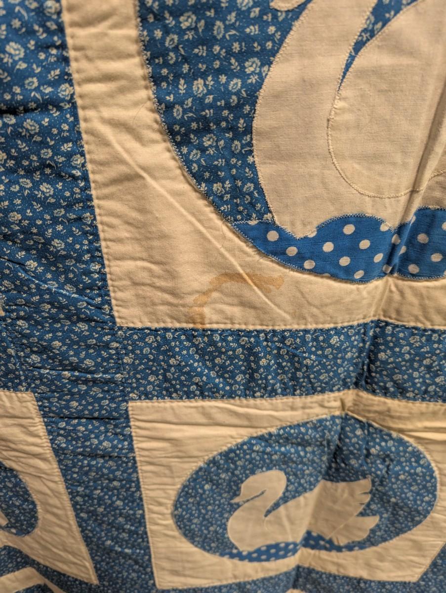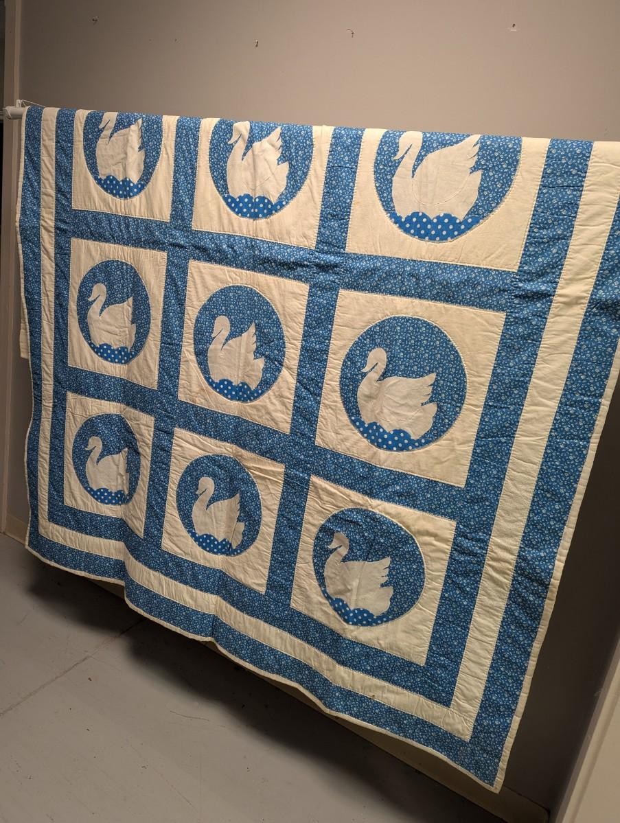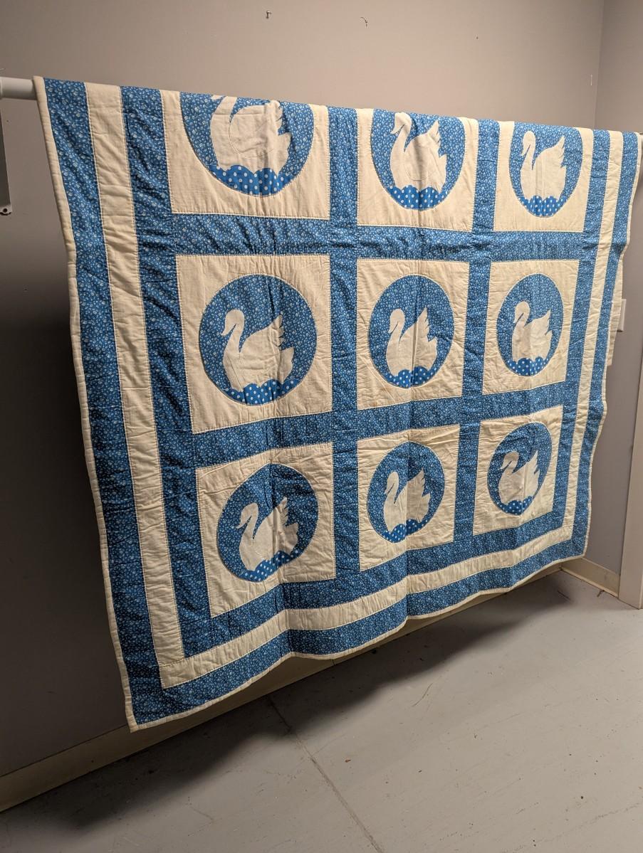 Contemporary Blue & White Quilt With Swans 92 x 90 Inches #2