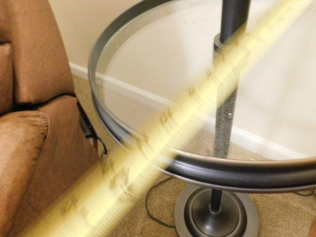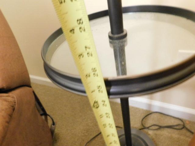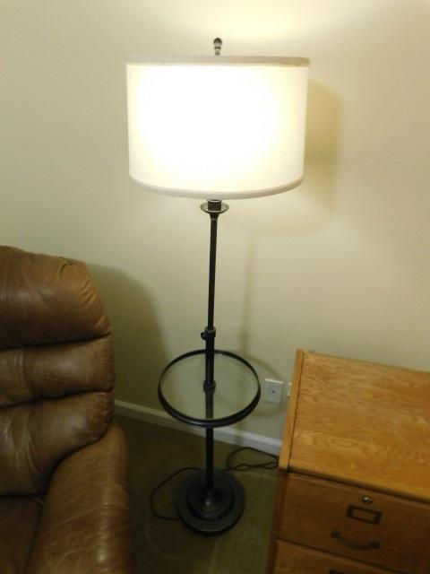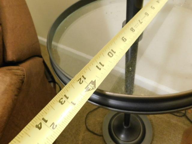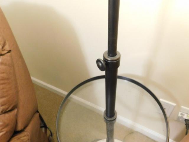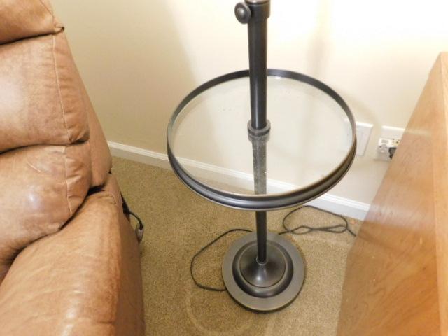 Contemporary Bronze Finish Post Floor Lamp with Adjustable Height Arm and Glass Table Accent