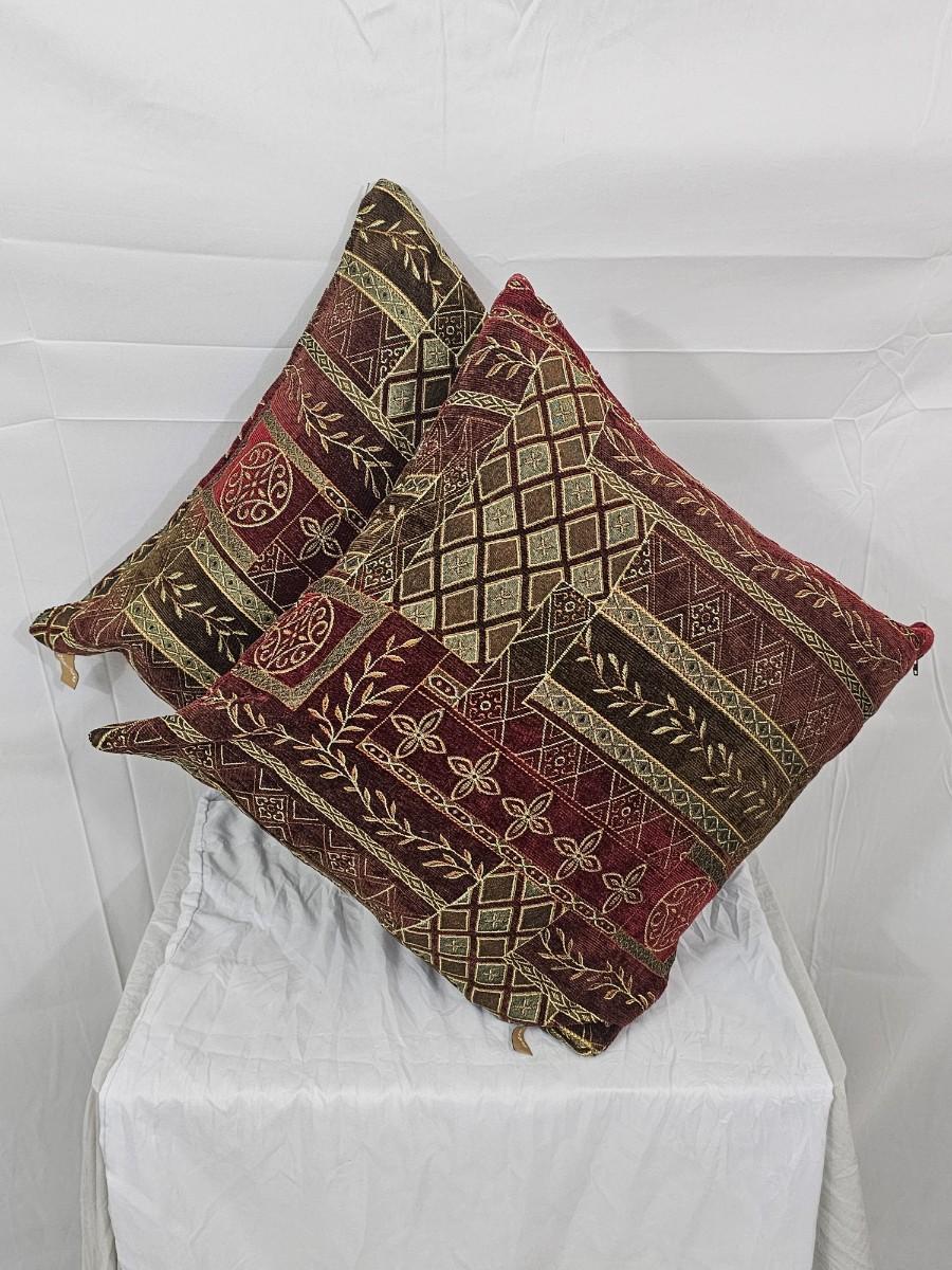 Contemporary Brown & Burgundy 20x20 & 18x18 (Set of 2) Throw Pillows