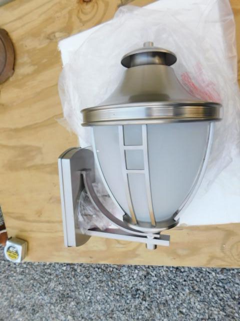 Contemporary Brushed Nickel Finish Outdoor Wall Lantern 16" like new condition