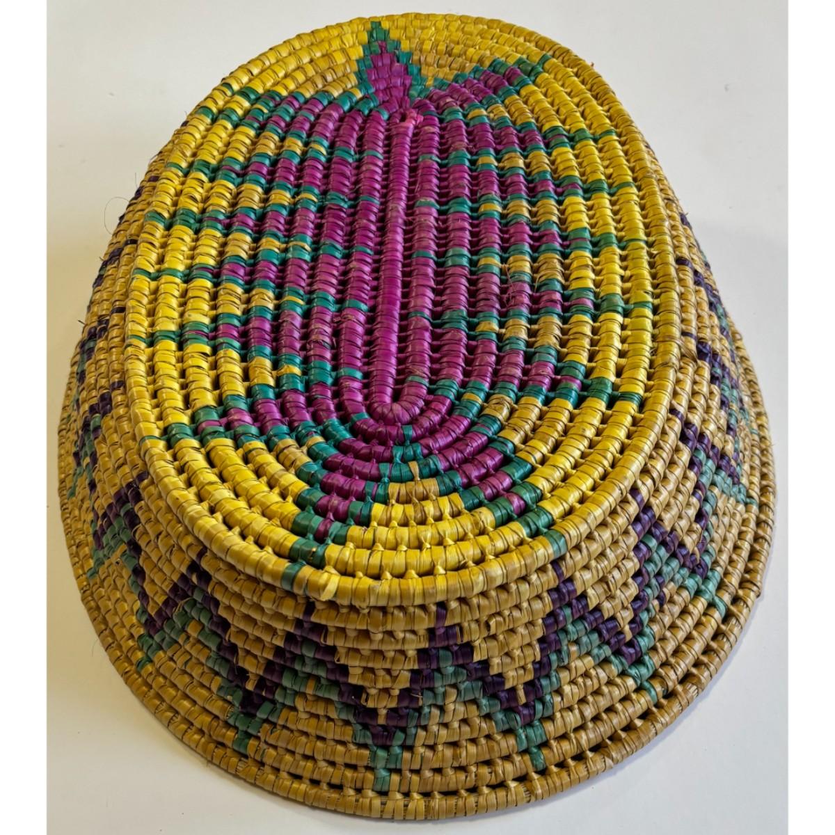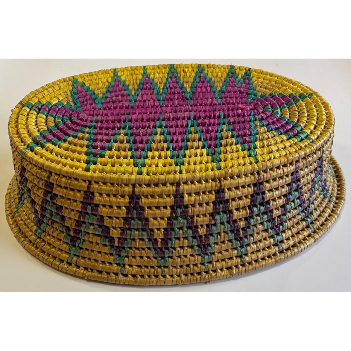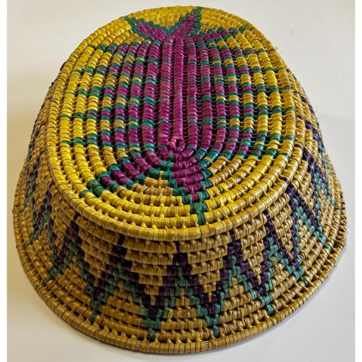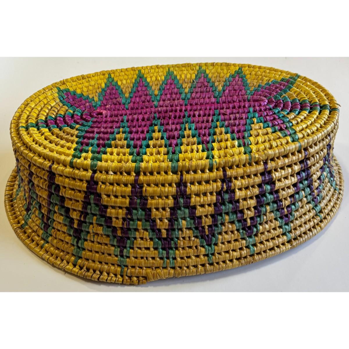 Contemporary Central American Woven Basket Yellow Green Purple Fuchsia