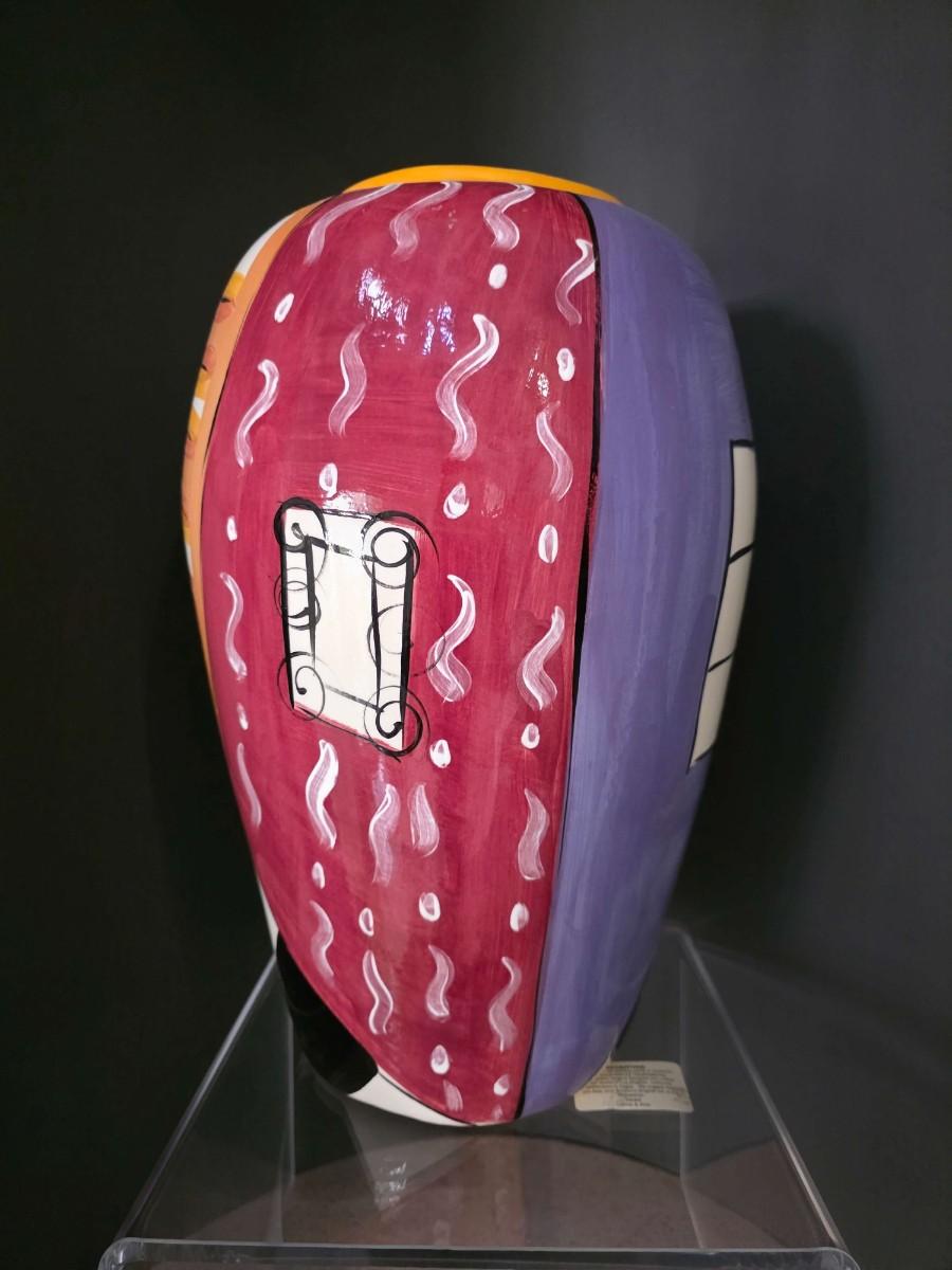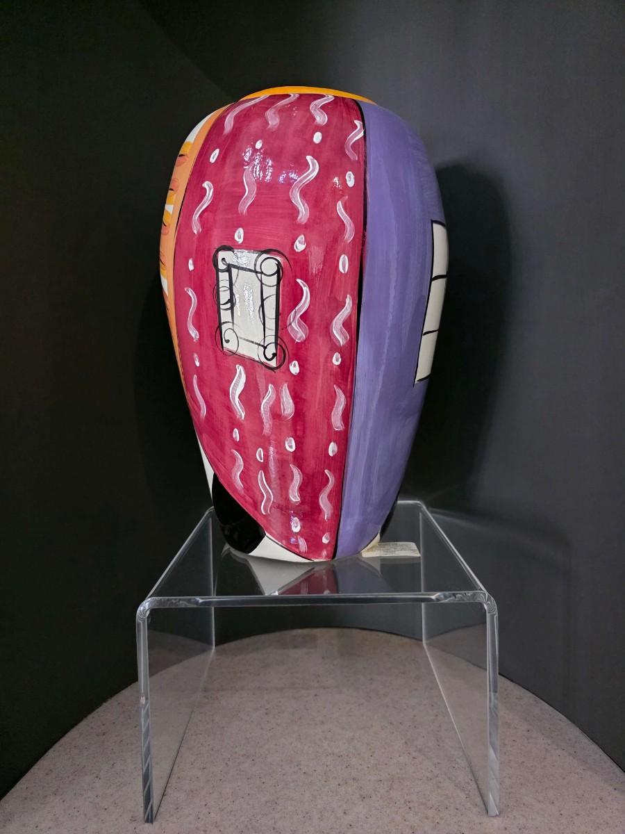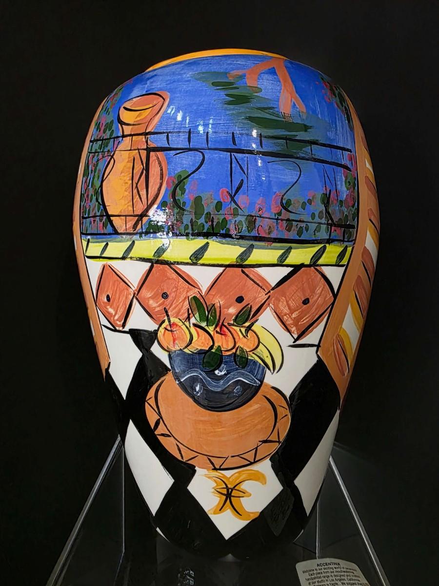 Wildy vibrant contemporary ceramic art glass designed and crafted by artisans out of Accentrix studio in Los Angeles, CA. The vase measures 16"H x 10"W.
