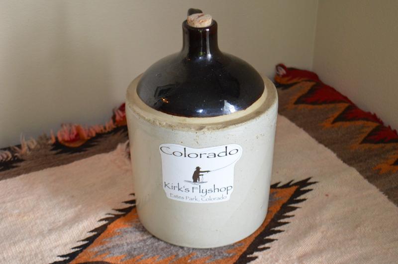 CONTEMPORARY CLAY WHISKY JUG COLORADO FLY FISHING