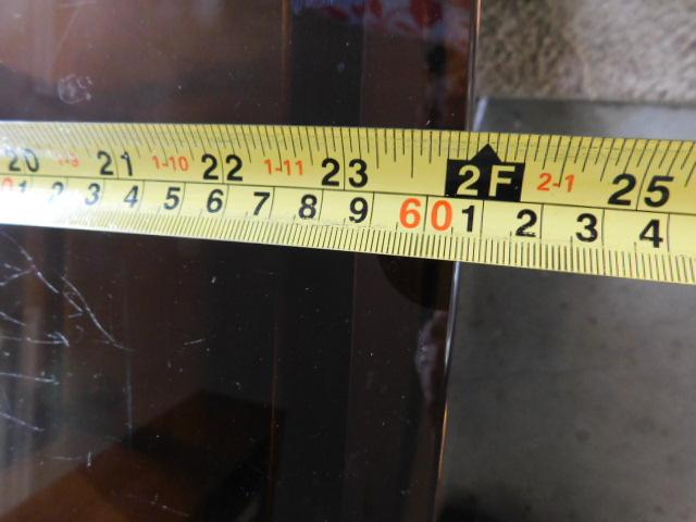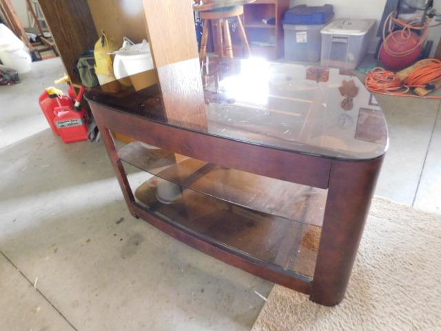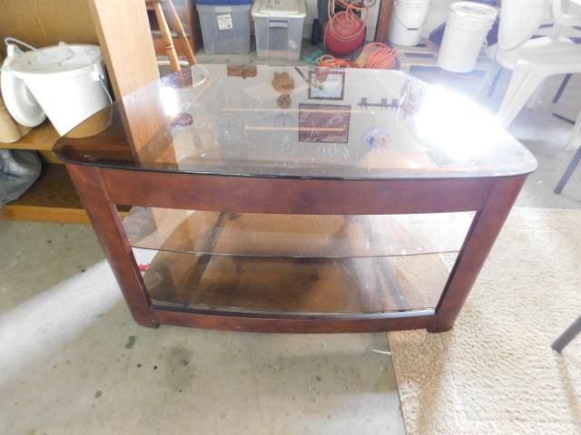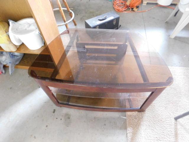 Contemporary Design Glass Shelf TV Stand with Wood Frame 39" w may have scratches to the wood surface but very functional. Needs cleaning