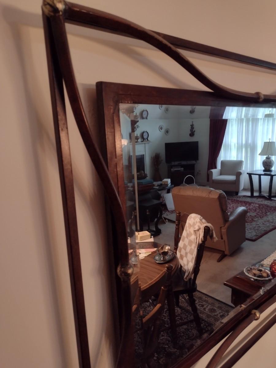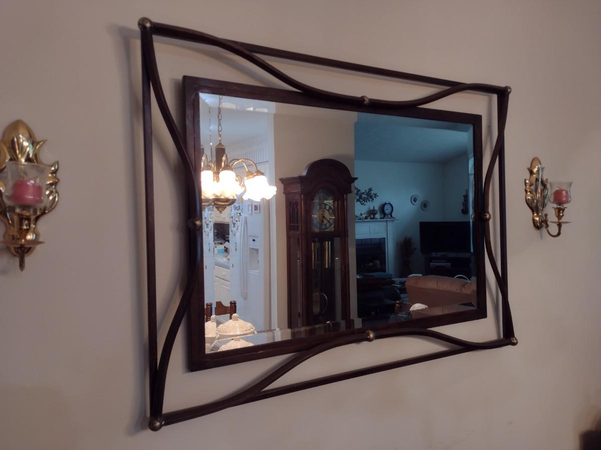 Contemporary Design Wrought Metal Frame Beveled Glass Wall Mirror