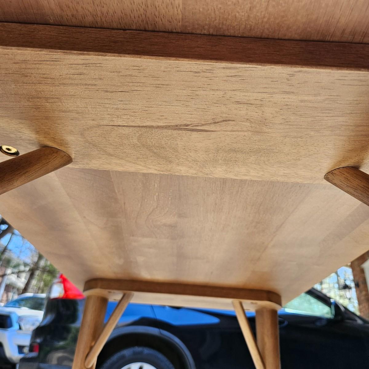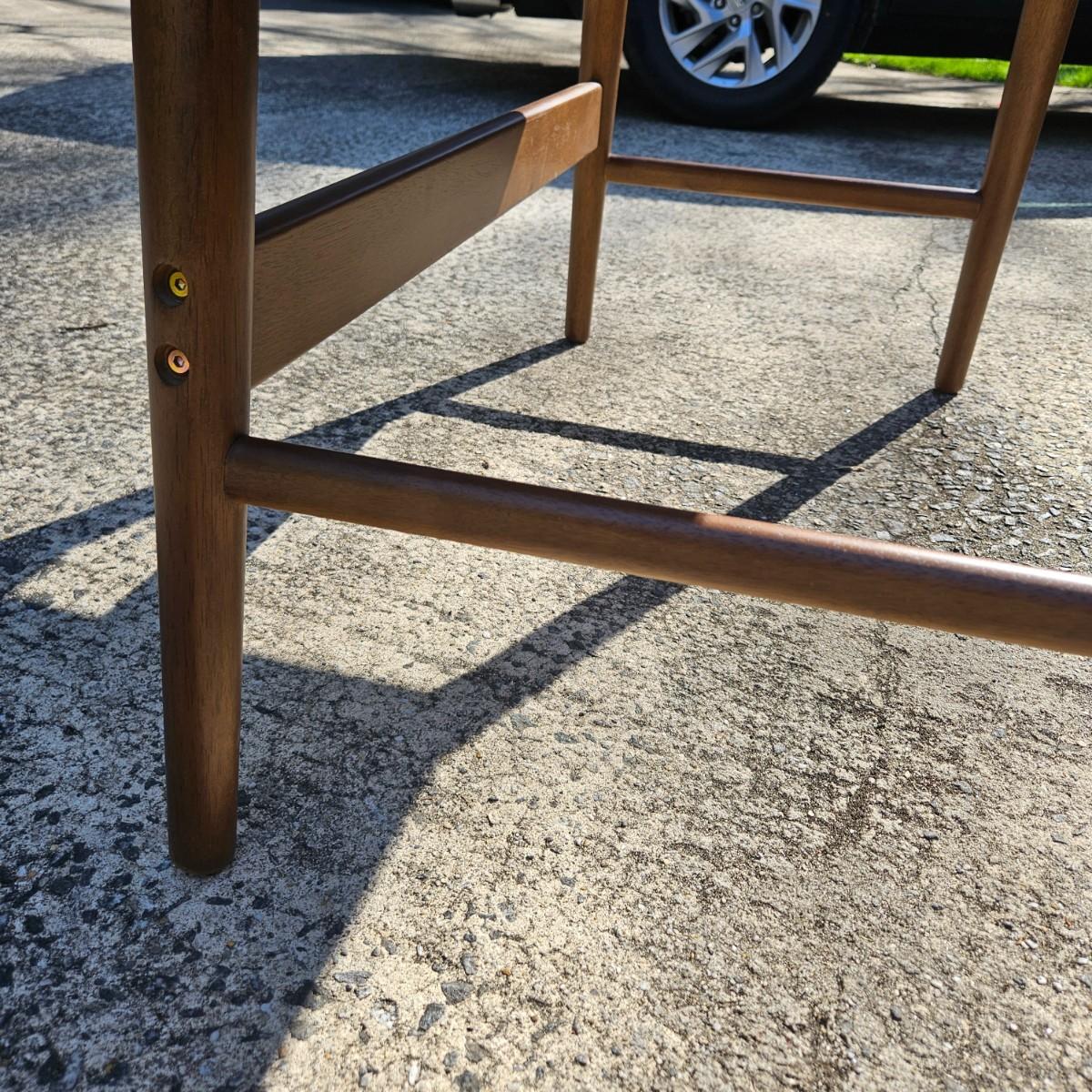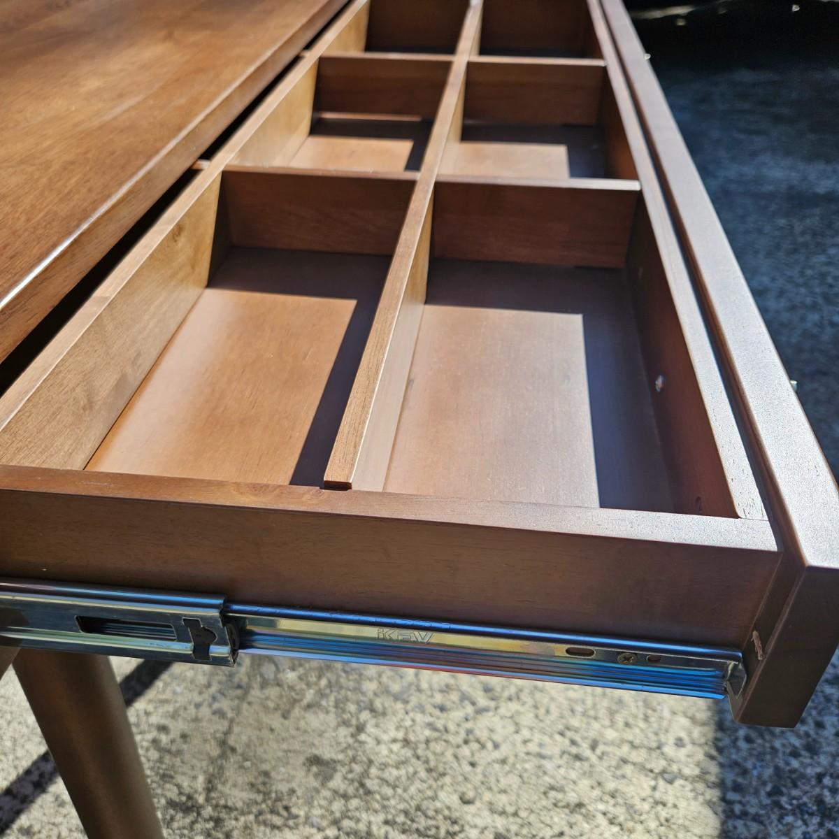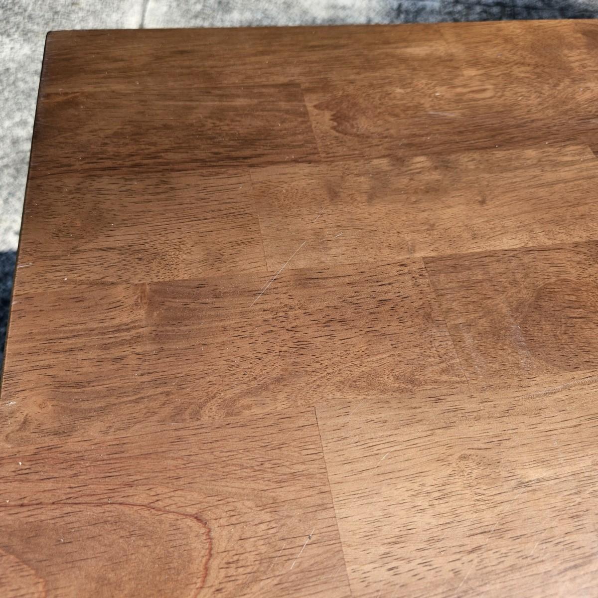 A contemporary desk that measures approximately 35.5" x 20.5" x 30"H. The desk is constructed of engineered wood with a faux wood veneer and has some scratches and minor damage. Local pickup only. Winning bidder must bring assistance to help move and load this item due to its weight and/or size.