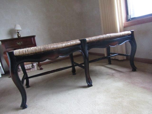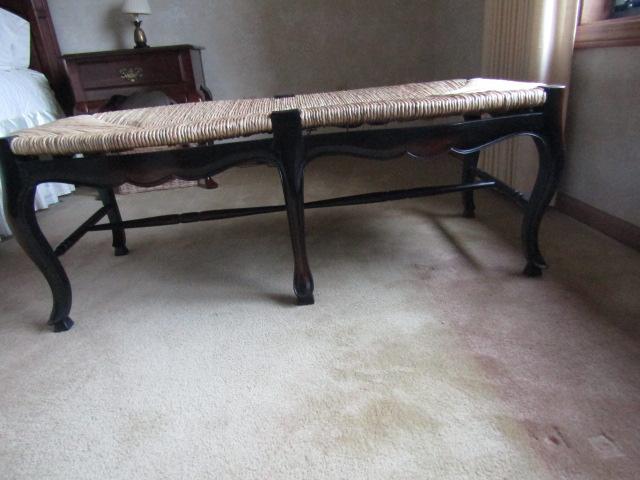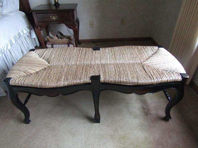Contemporary Double Seated Rush and Wood Frame Sitting Bench