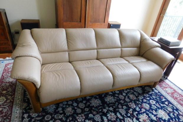 Ekornes Collection Leather Couch 85" in very good condition. main floor has a few steps to maneuver to get to drive