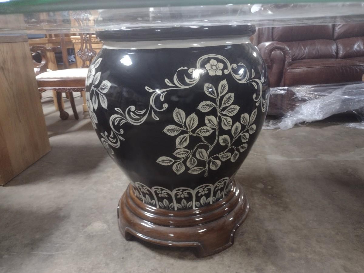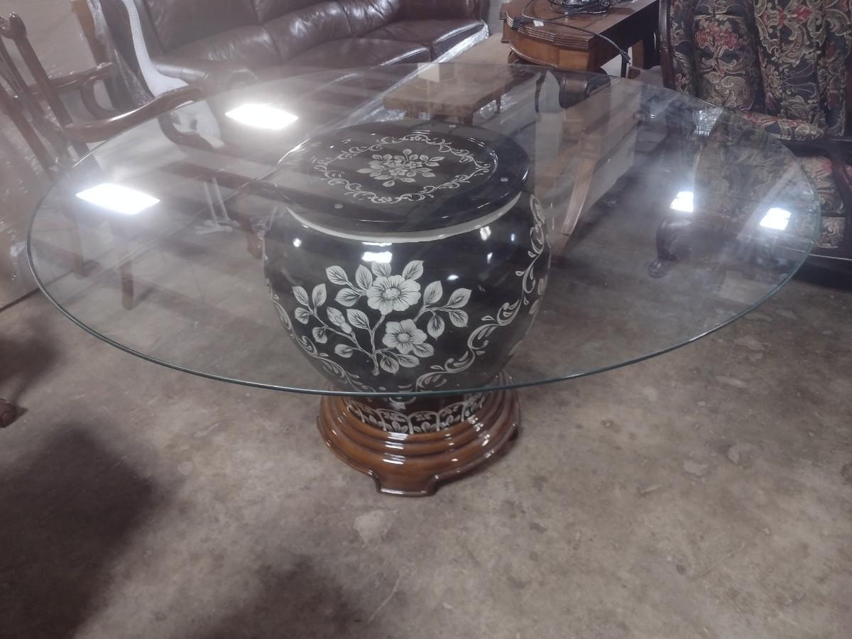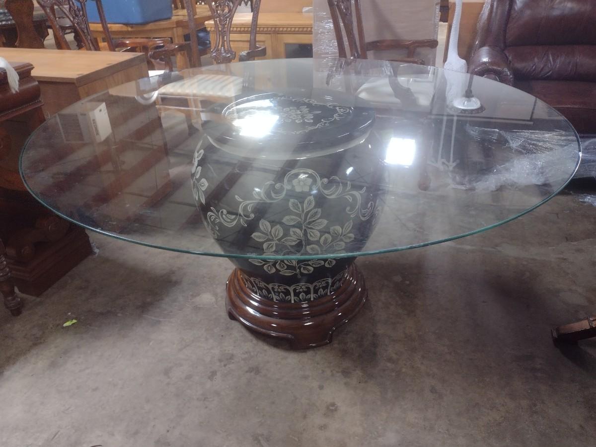 Contemporary Ginger Jar Base Glass Top Dining Table