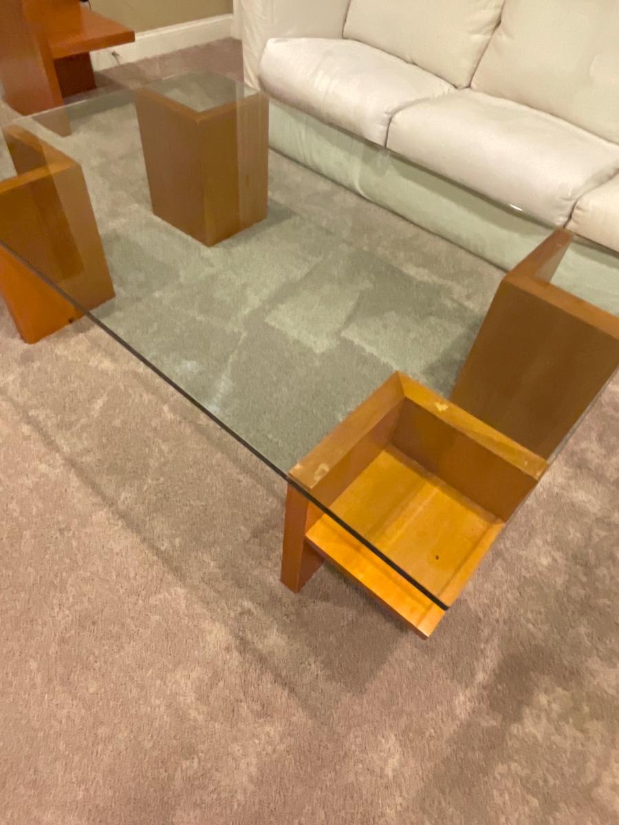 Contemporary glass and wood coffee table and matching console