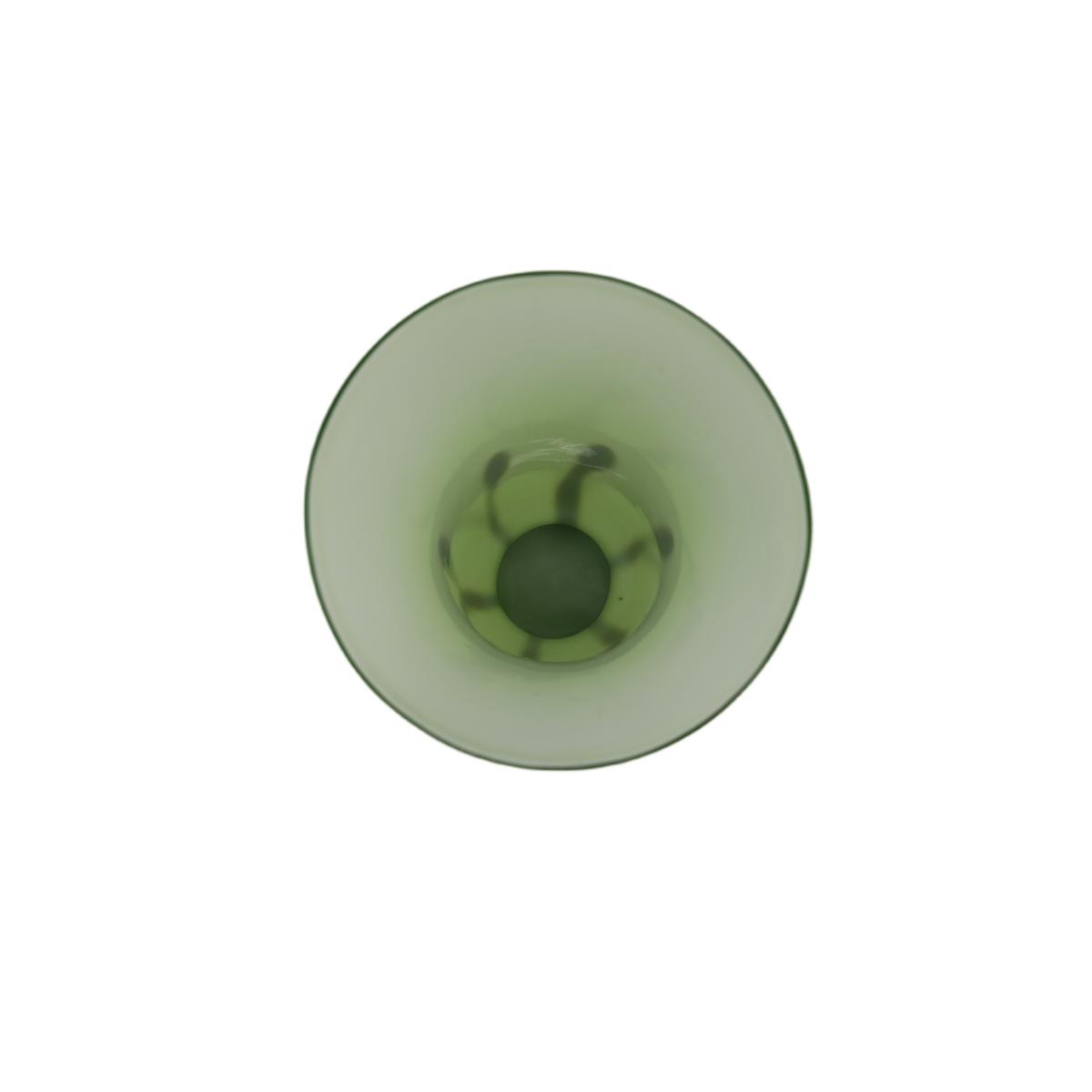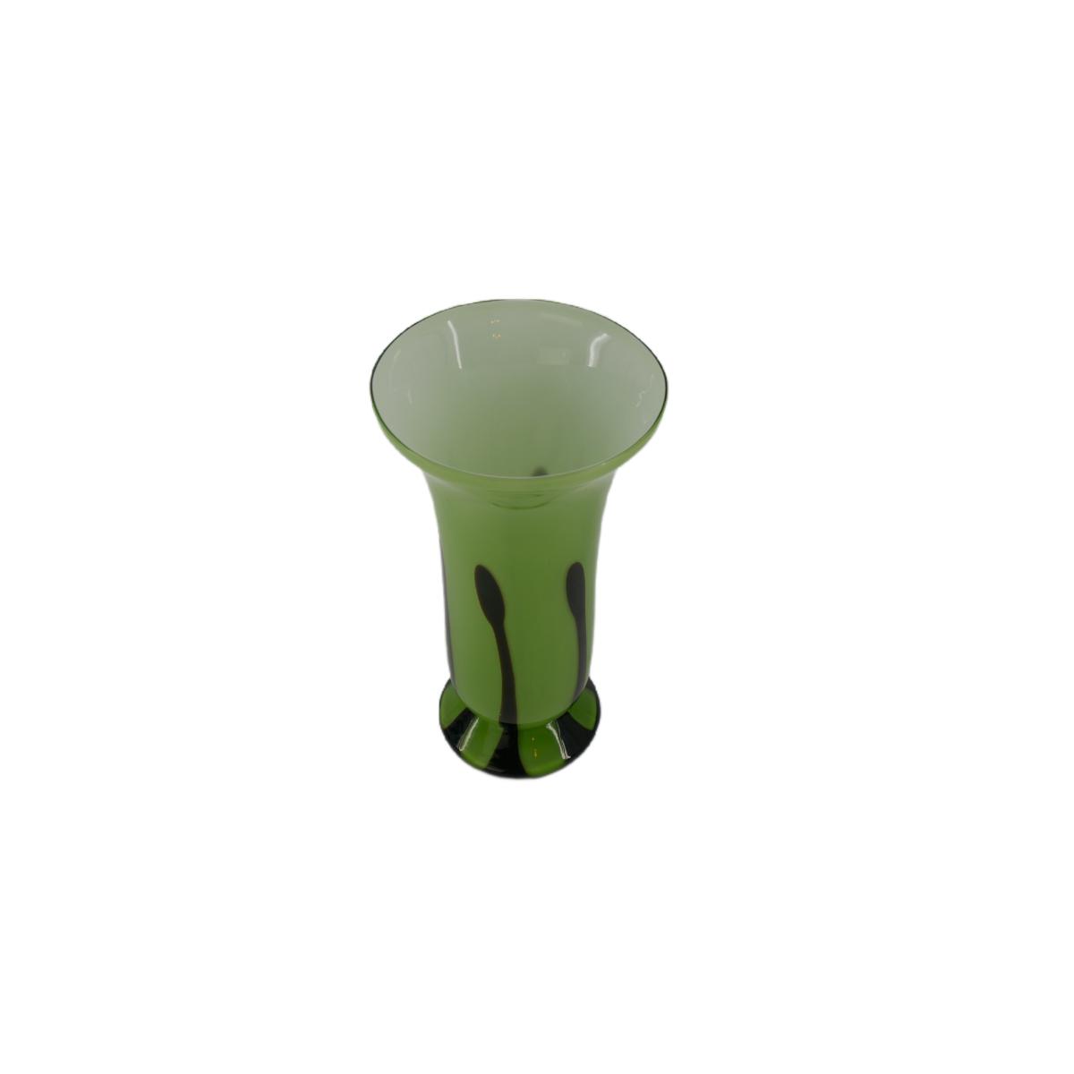 Contemporary artisan green and black designed glass vase. Excellent condition, no visible issues found. No maker's mark or signature. Measures L 3.5" x H 9". Weighs 1 lb 3 oz. (D59)