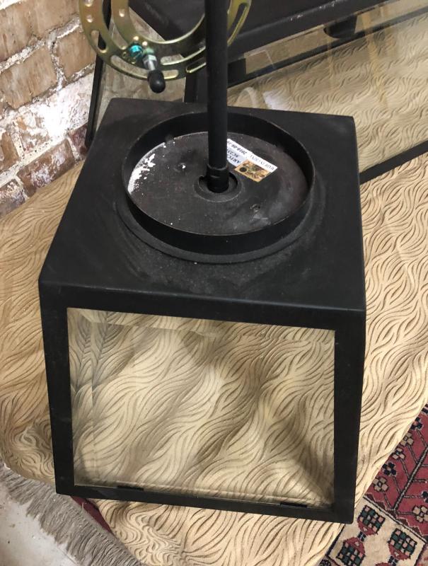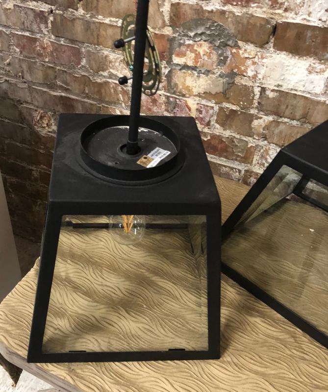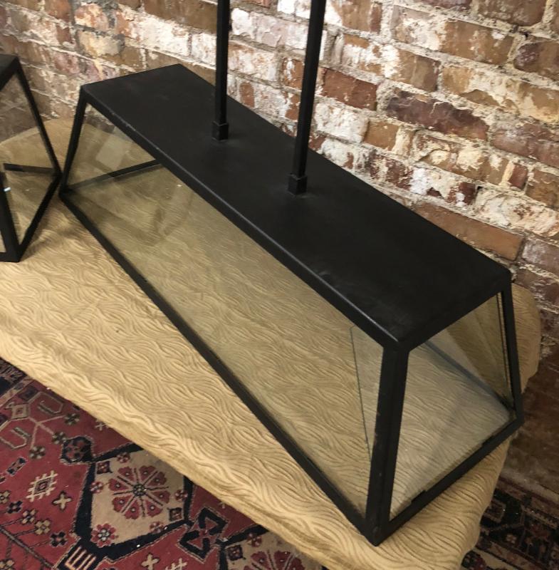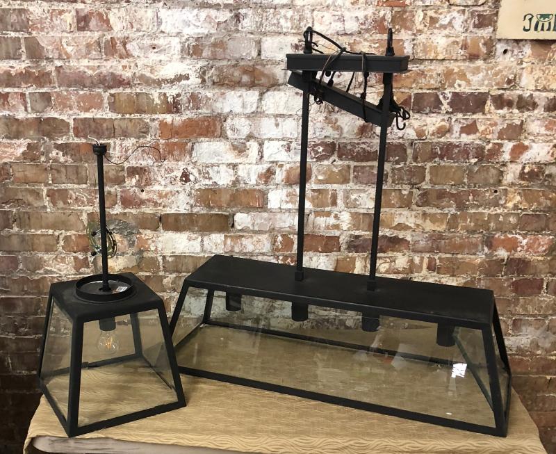 Good condition on this contemporary black iron and glass light bar set...with additional pendant light...as shown...