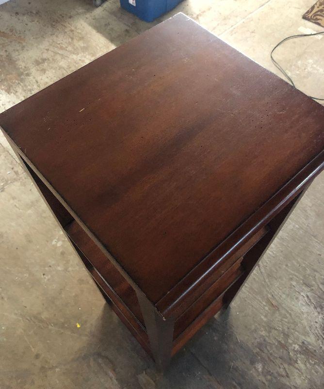 Nice condition with light use on this mahogany display shelf...16 x 16 x 48 inches high...