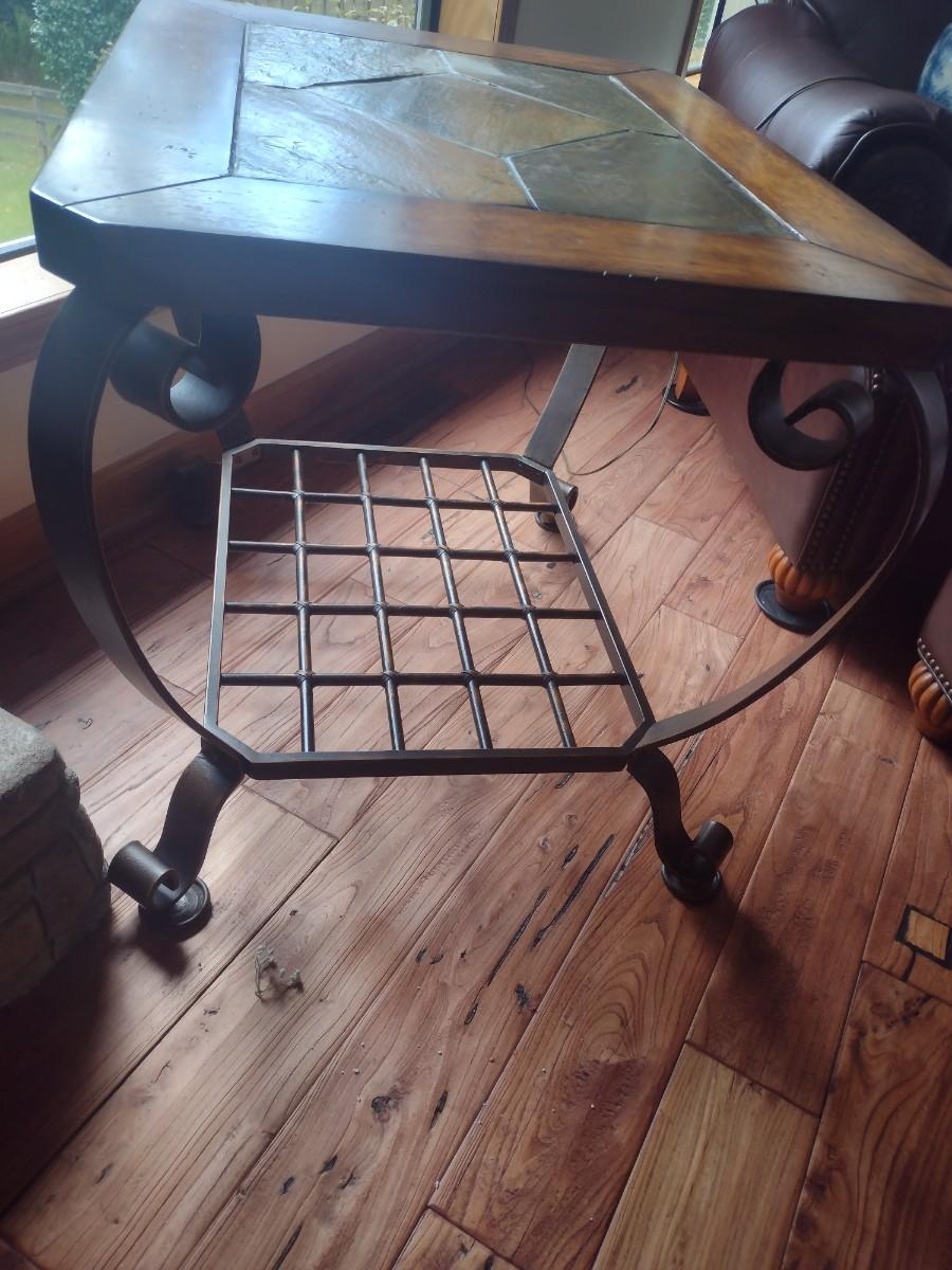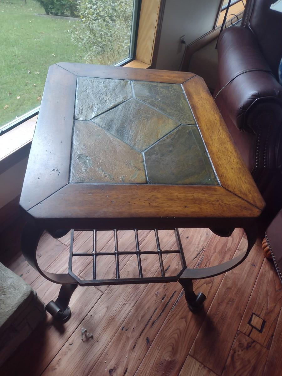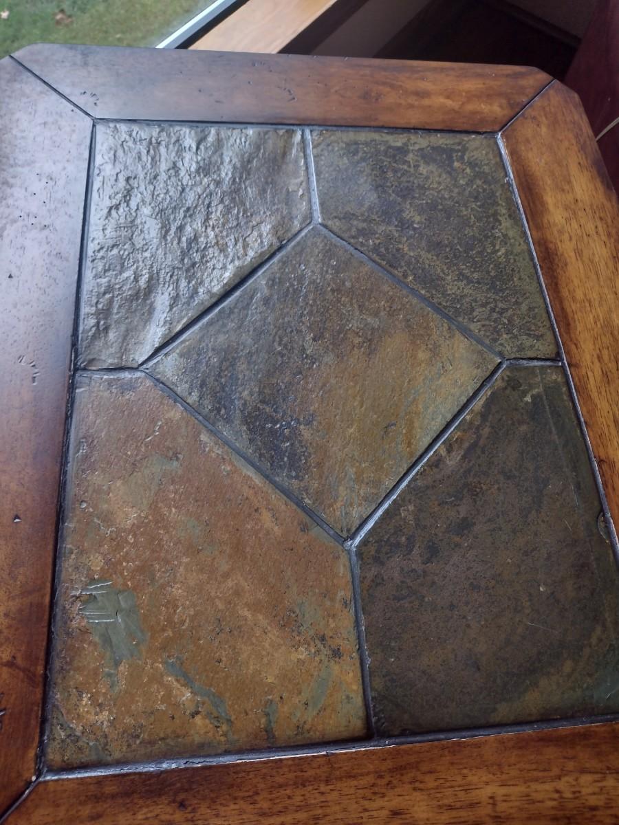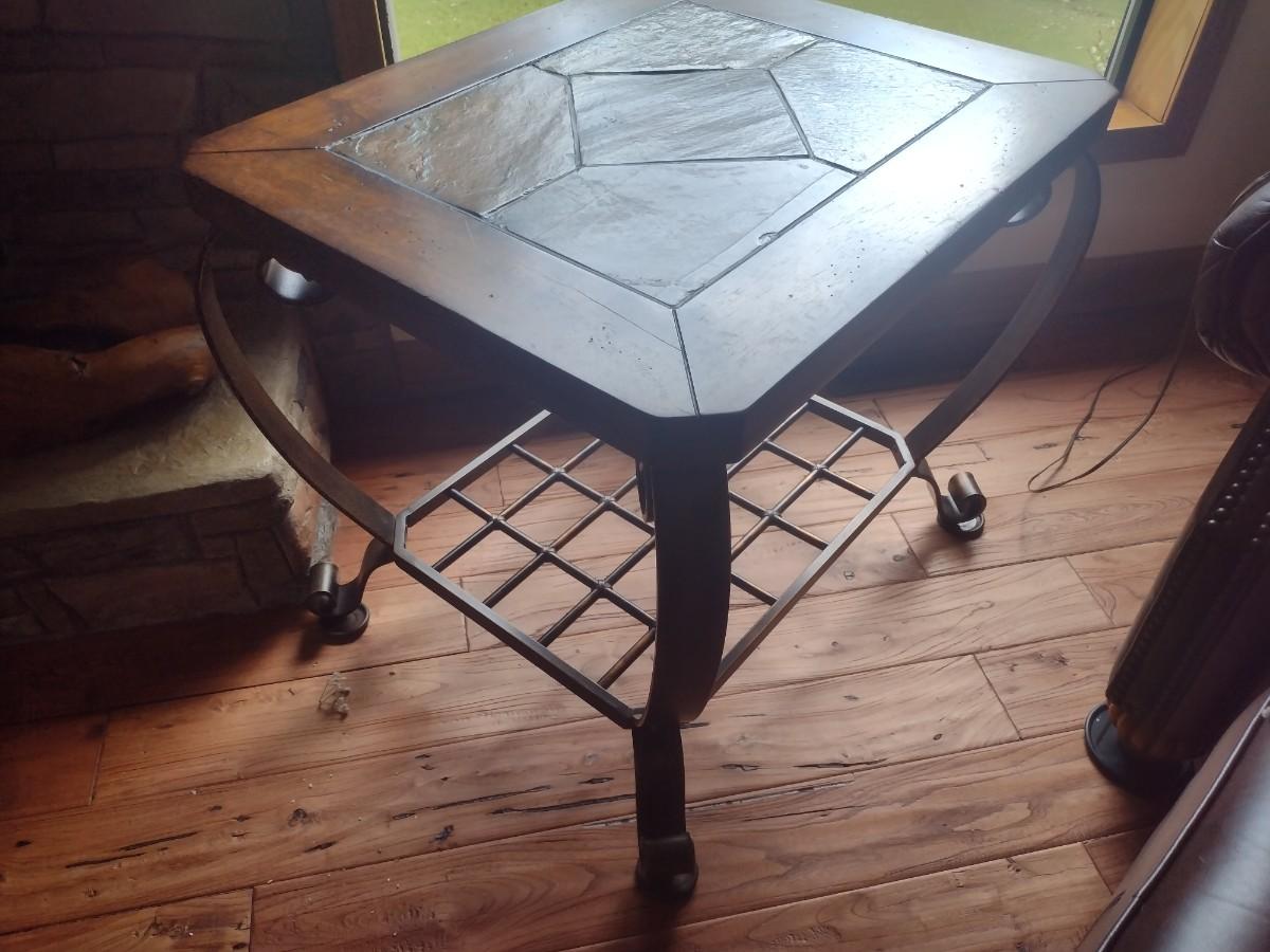 Contemporary Metal Frame Side Table Slate Inlay Top Choice A