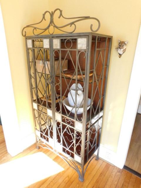 Contemporary Metal Iron Tube Frame Double Door Wine Cabinet (No Contents) only two stairs down off porch.