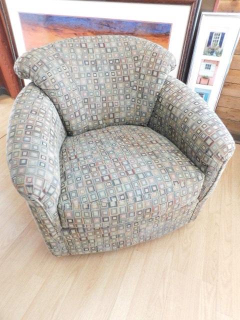 Contemporary Sealy Brand Upholstered Arm Chair Rocks and Swivels very good condition easy access no stairs
