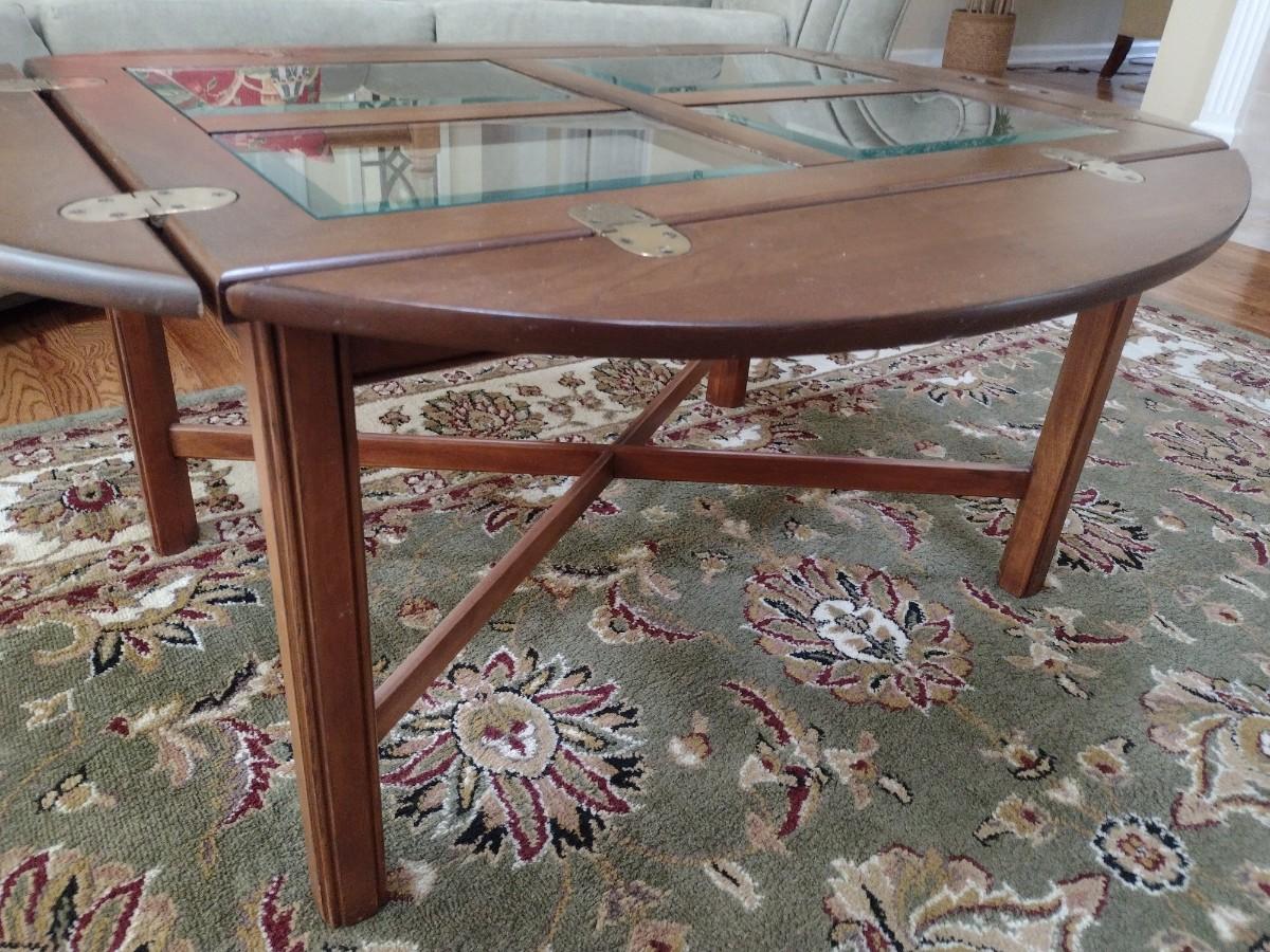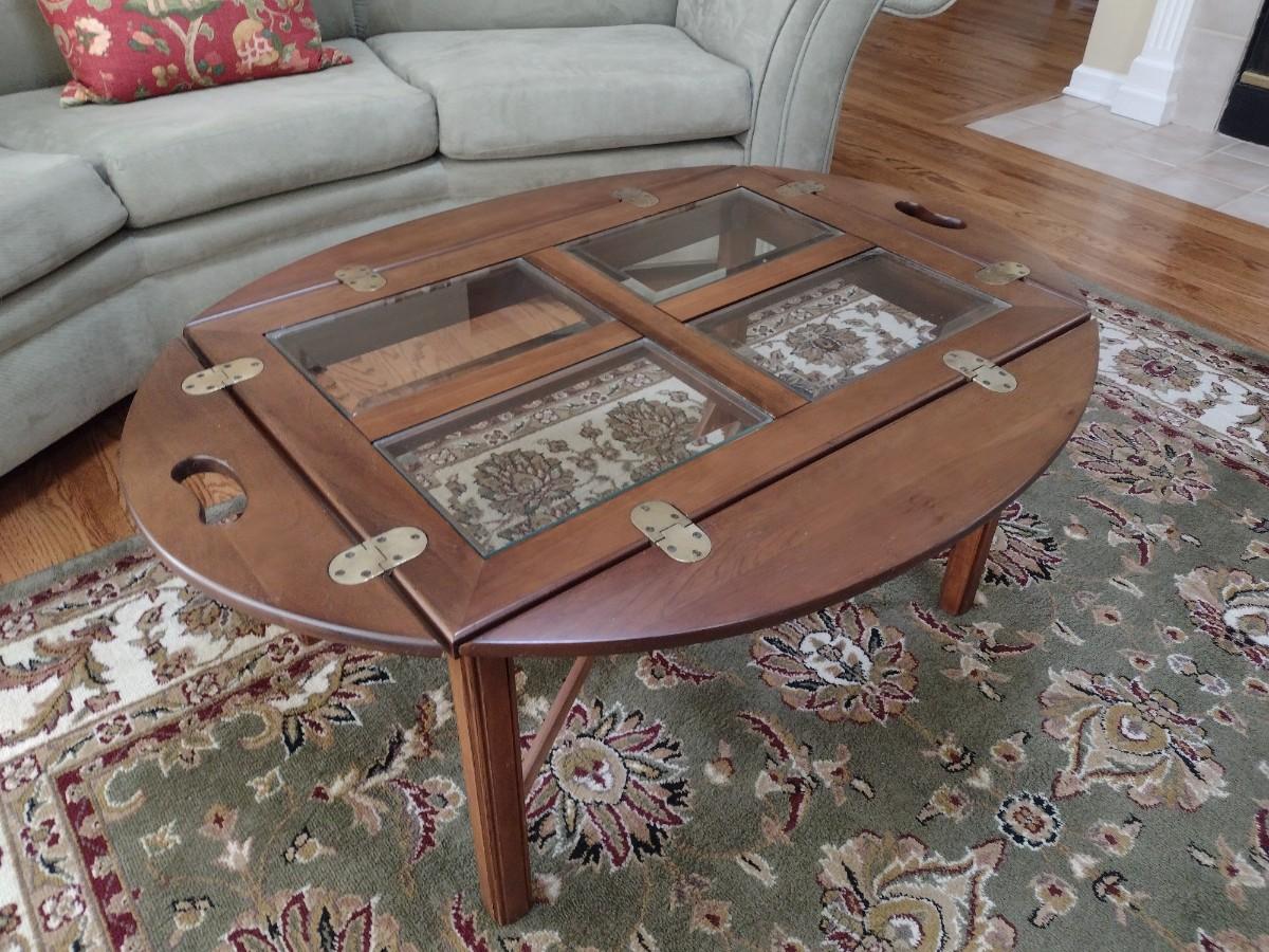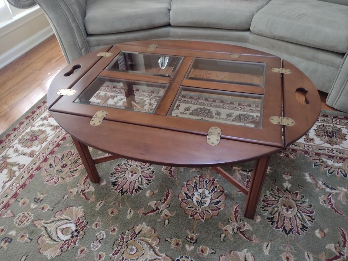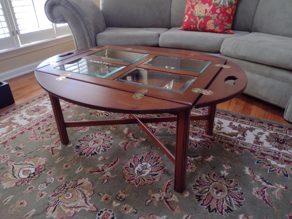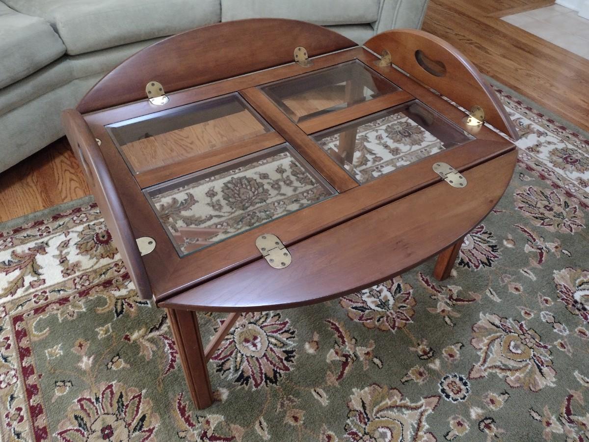 Contemporary Solid Wood Butler Coffee Table with Glass Inlay