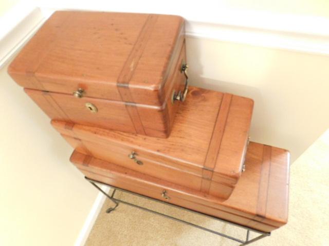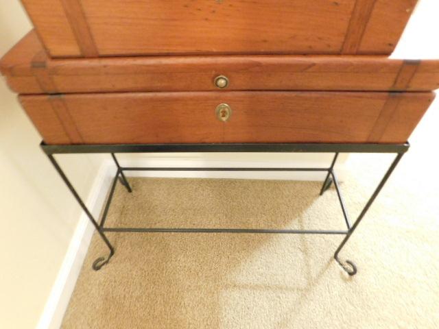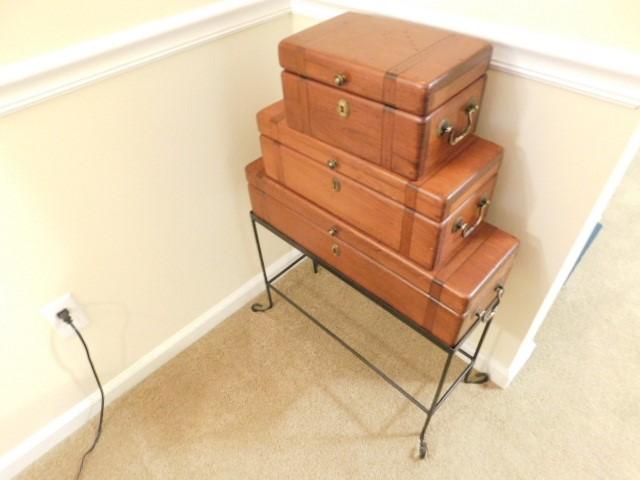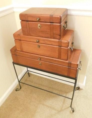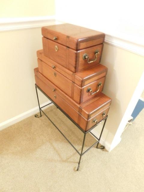 Contemporary Solid Wood Stack Storage Boxes on Wrought Iron Frame Stand