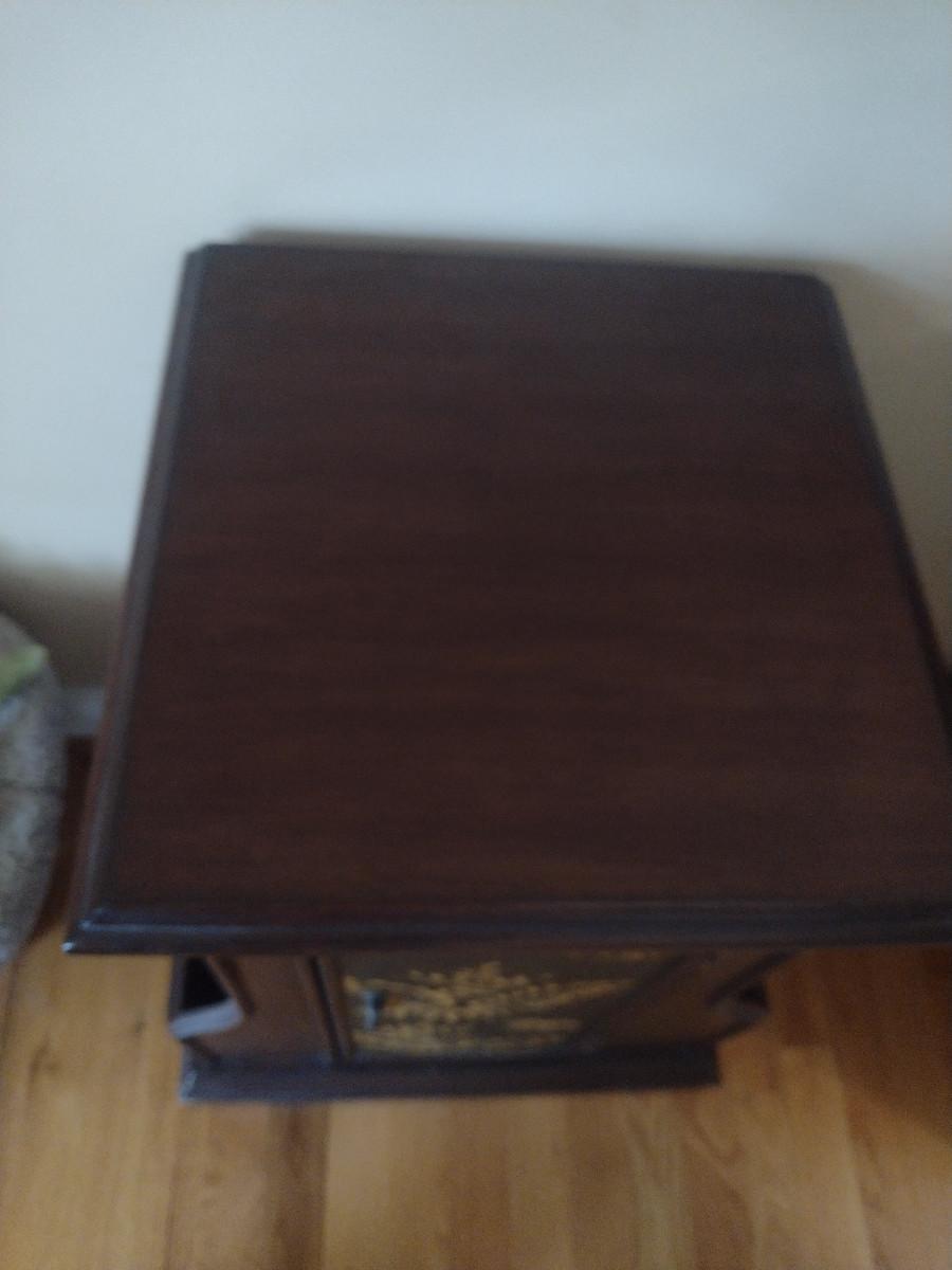 Contemporary Storage Accent Table with Double Magazine/Book Racks. No contents included.