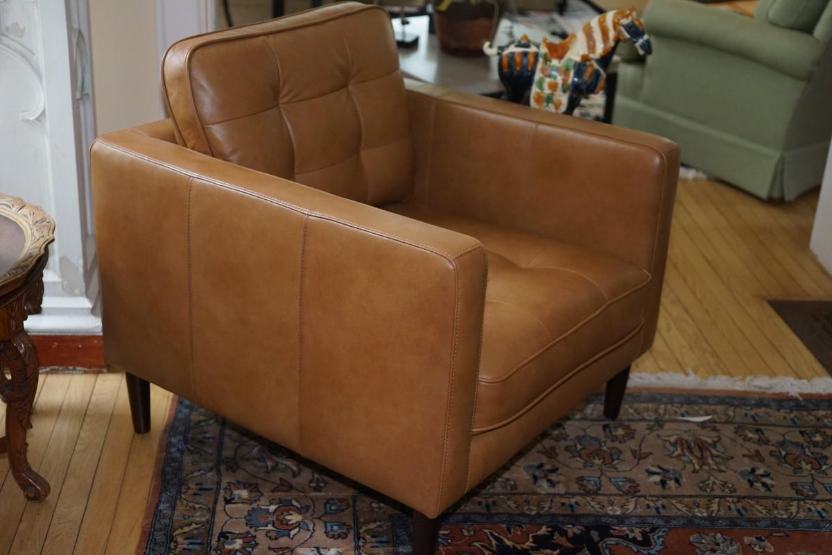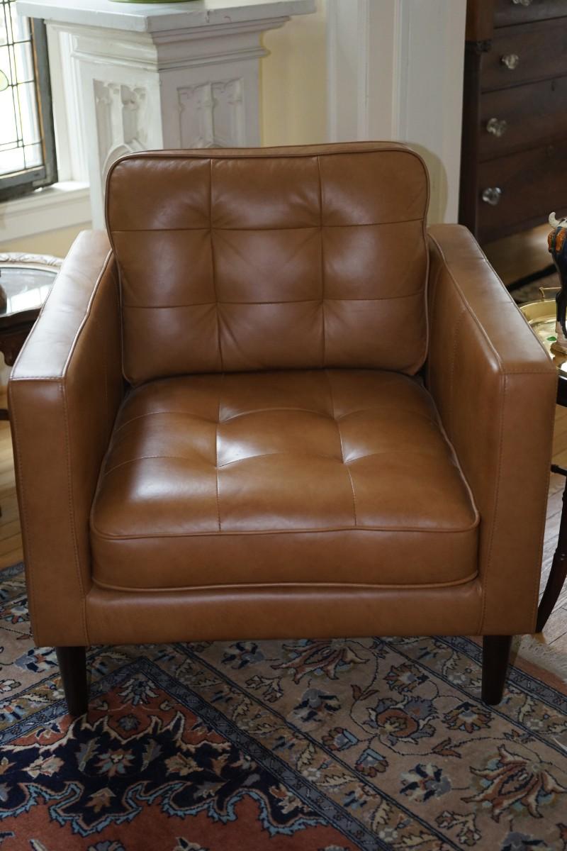 CONTEMPORARY STYLE BROWN LEATHER TUFT BACK AND SEAT SIDE CHAIR WITH WOODEN LEGS