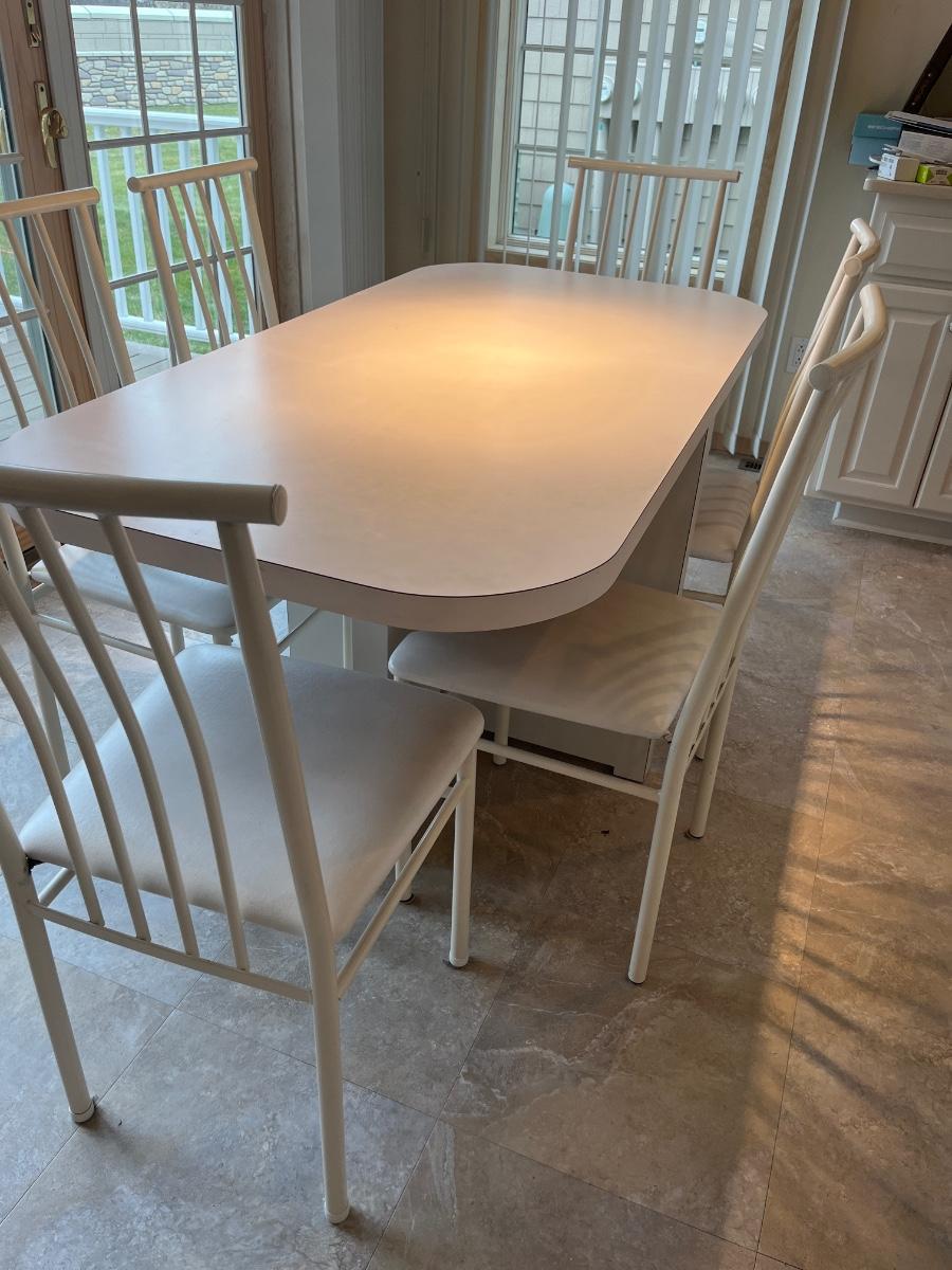Contemporary table & 6 Vintage AmiscoPost-modern metals chairs