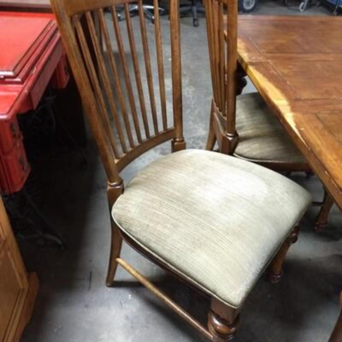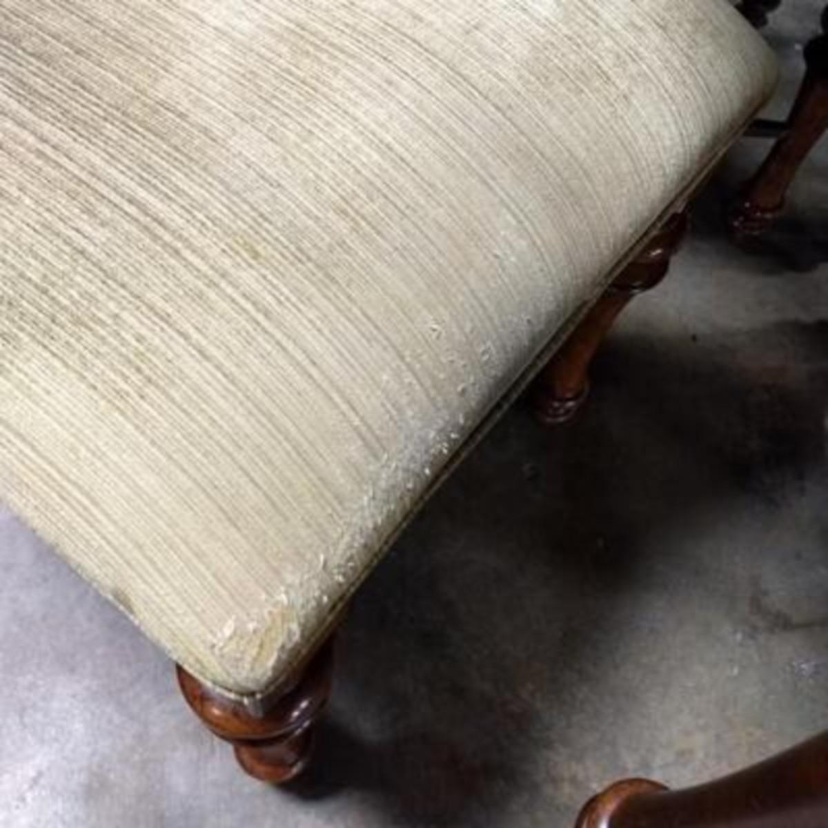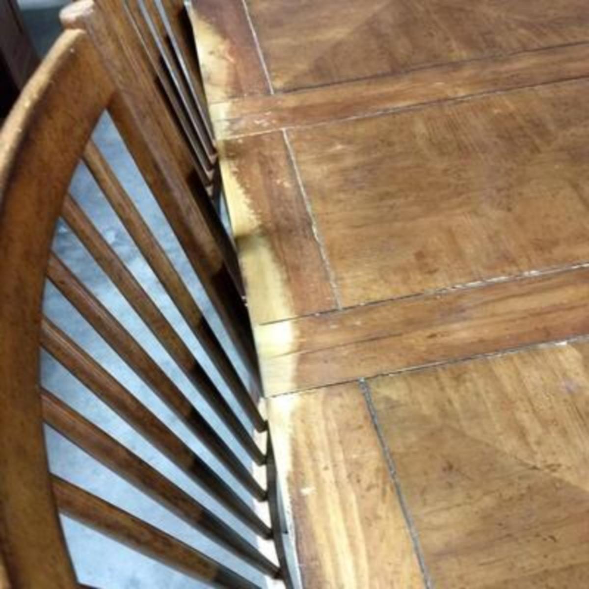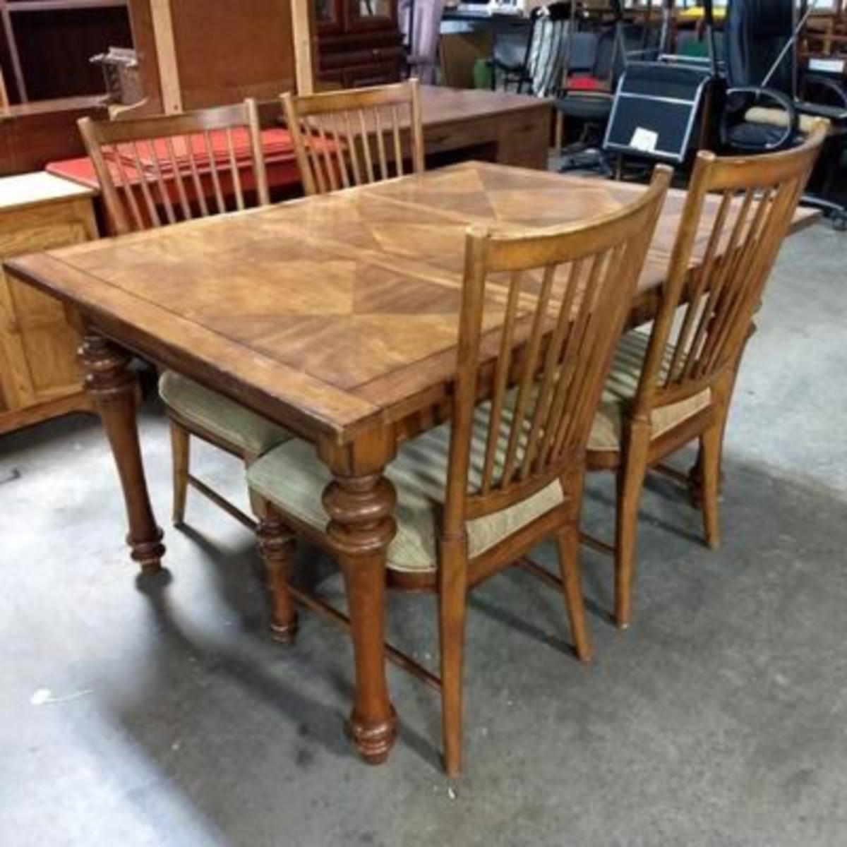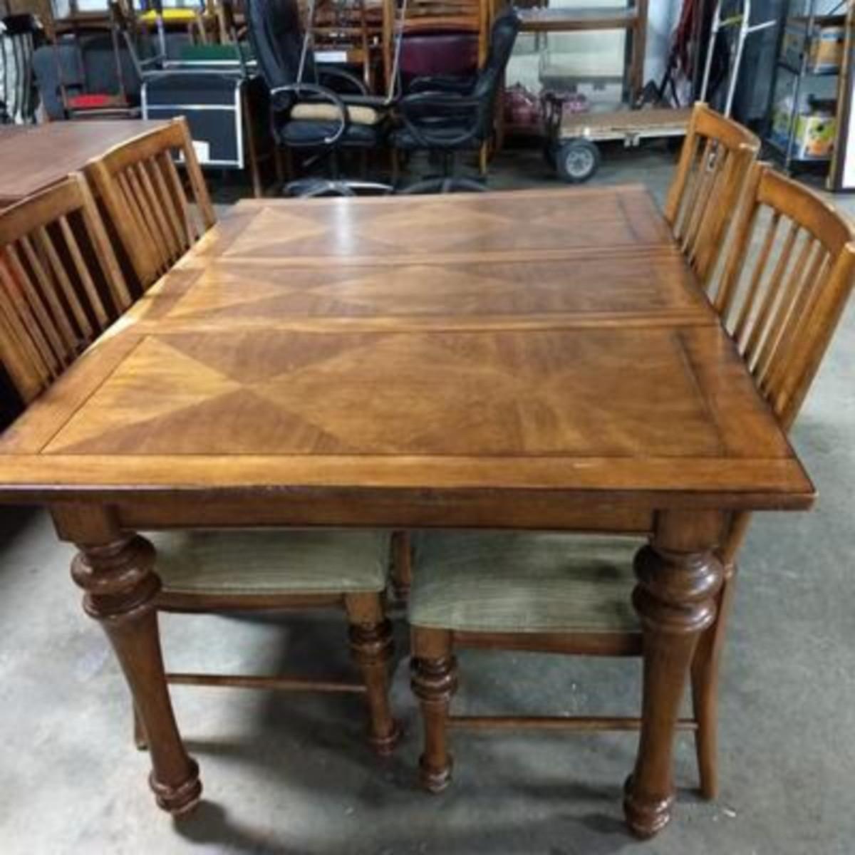Contemporary Table and Four Chair Set table has some wear to finish as shown....chairs may have some stains as shown