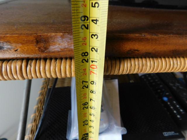 Contemporary Wood and Wicker Side Table with Open Shelves 27"x19"x29" (No Contents) expect some wear or scratches to finish.