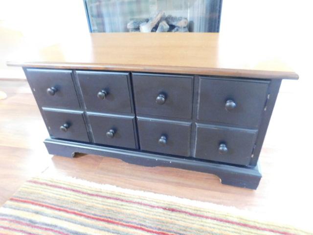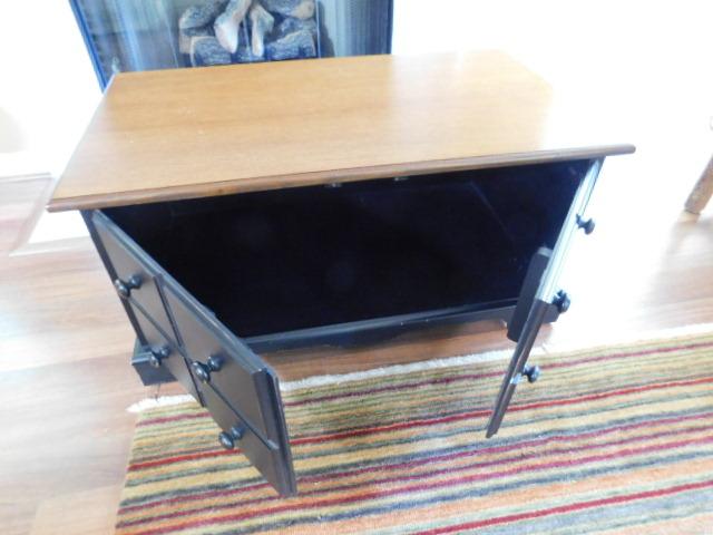 Contemporary Wood Finish Media Console with Castors in very good condition. no stairs