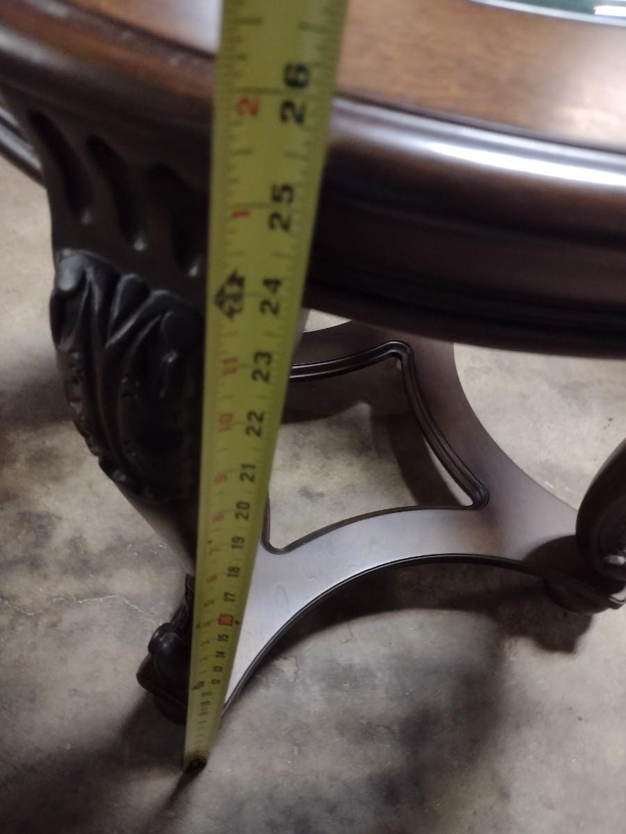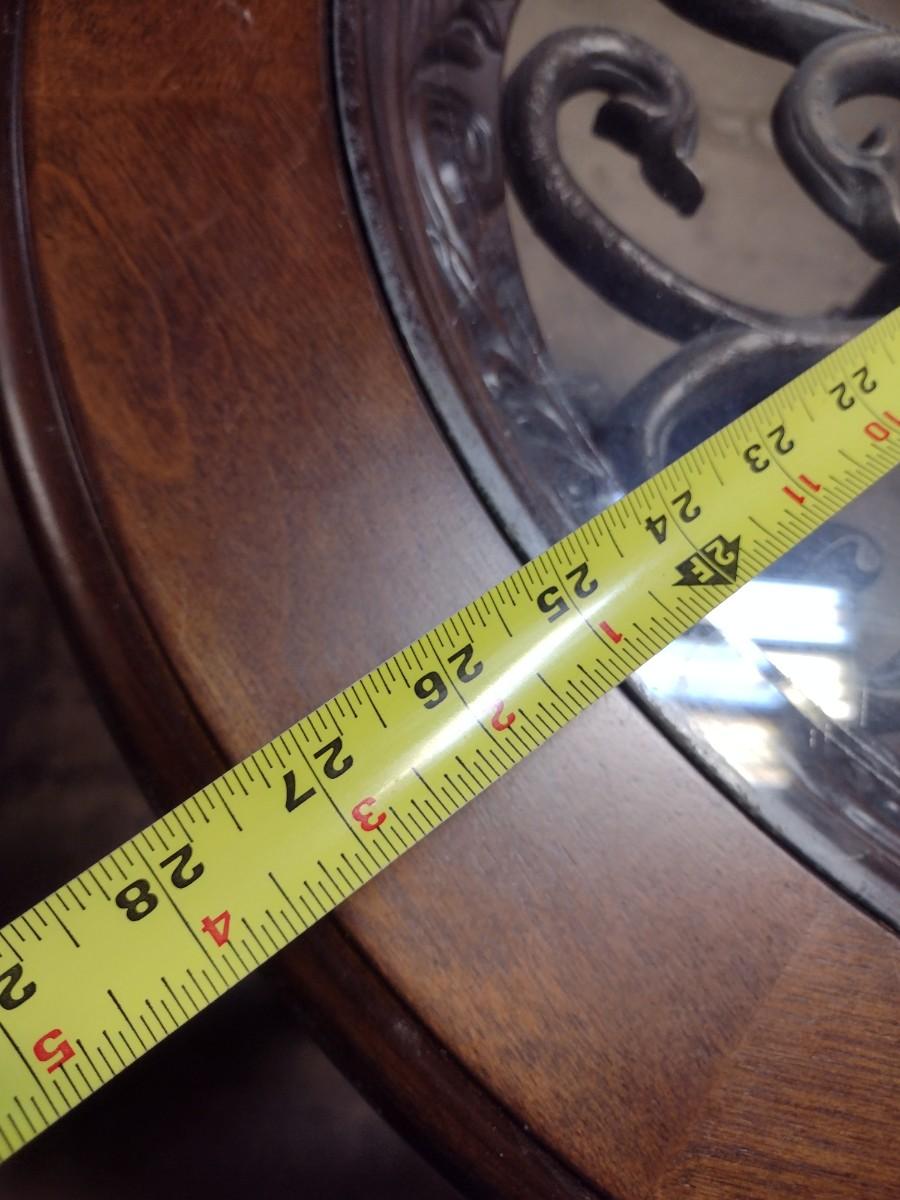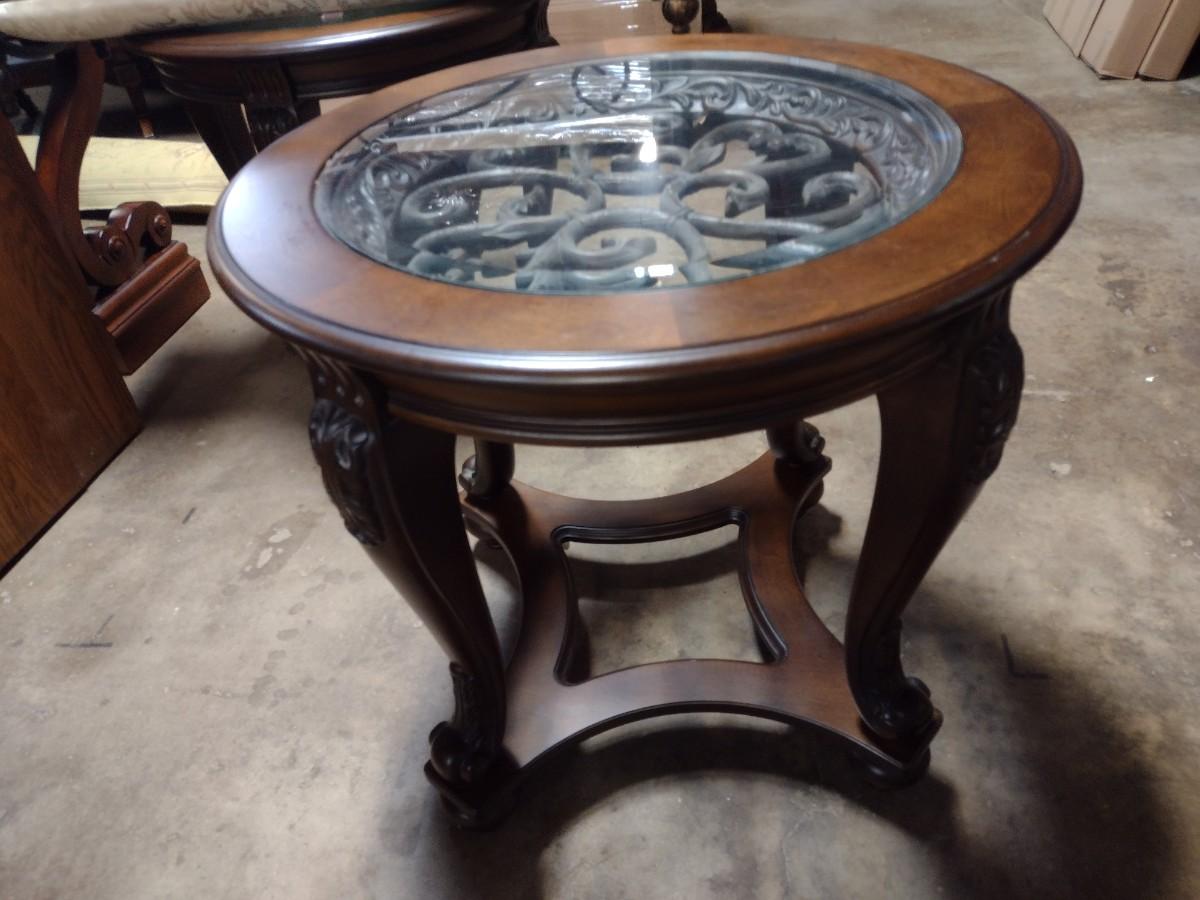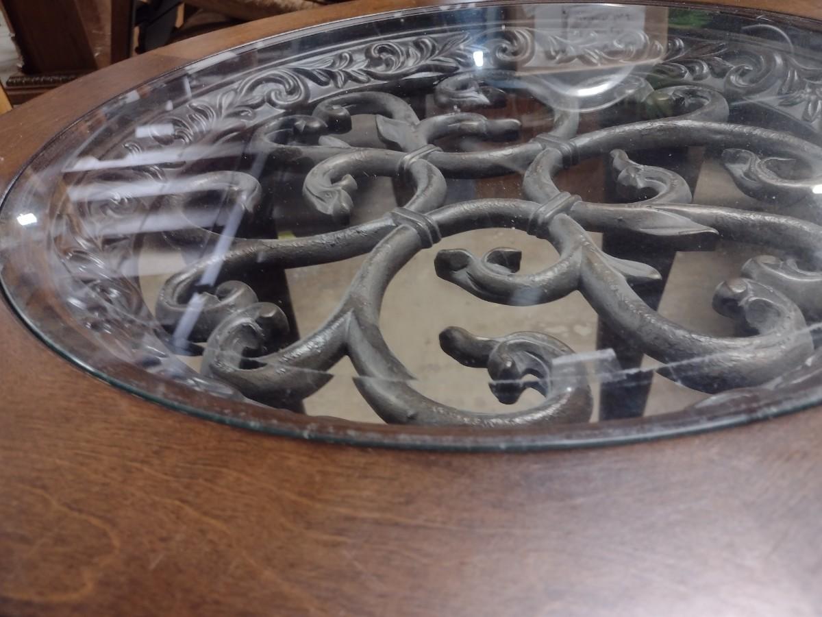Contemporary Wood Finish Side Table with Wrought Metal Accent and Glass Top Insert Choice A