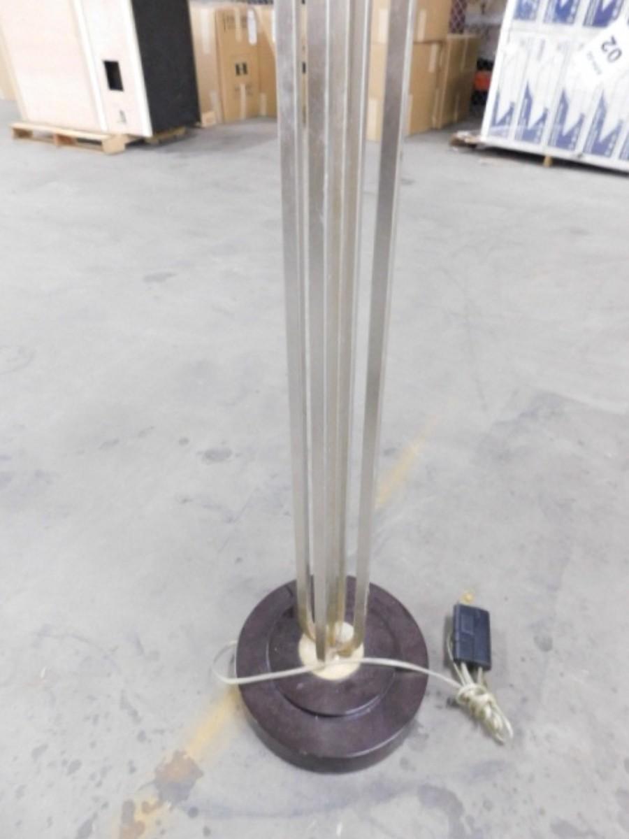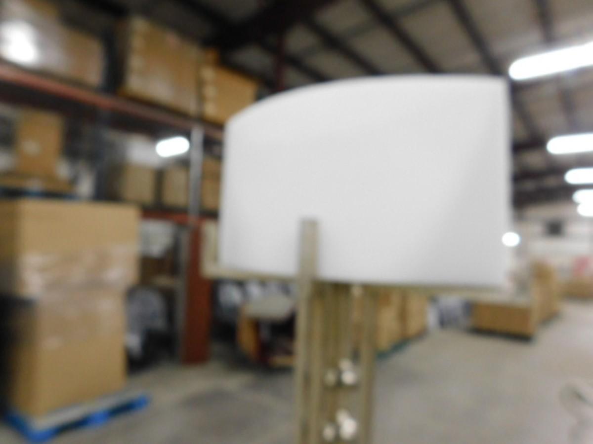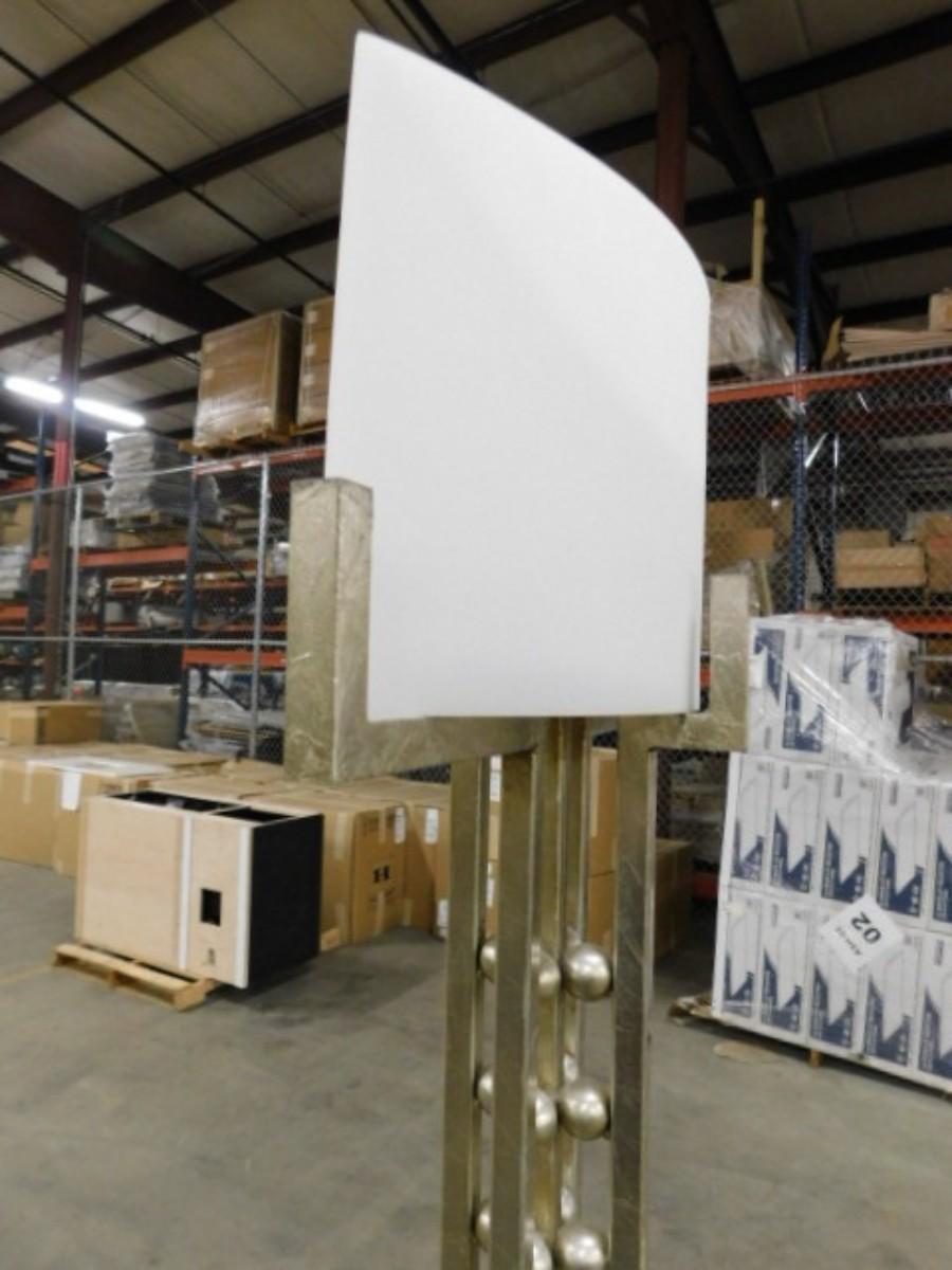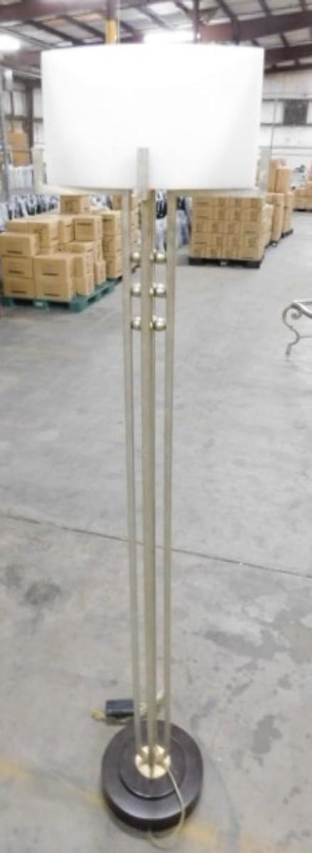 Contemporary Wrought Metal Floor Lamp with Shade. Expect wear or scratches to finish. Shipping option available via freight or local mover at Buyer's expense. Buyer must have all shipping scheduled within the stated dates and times of pickup. Recommended local mover is Beaty Bros. Moving 828-201-2982