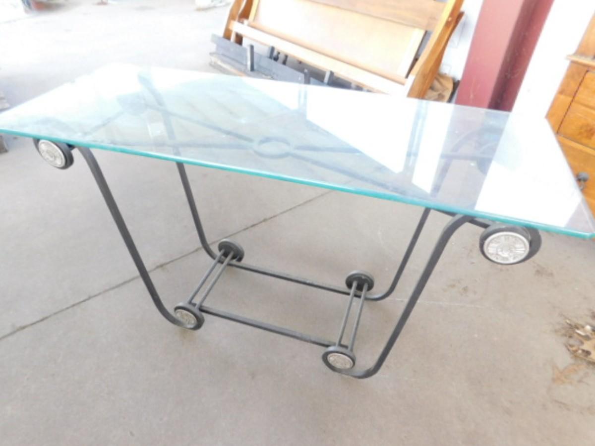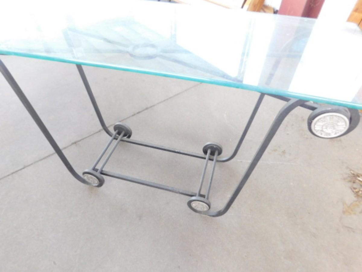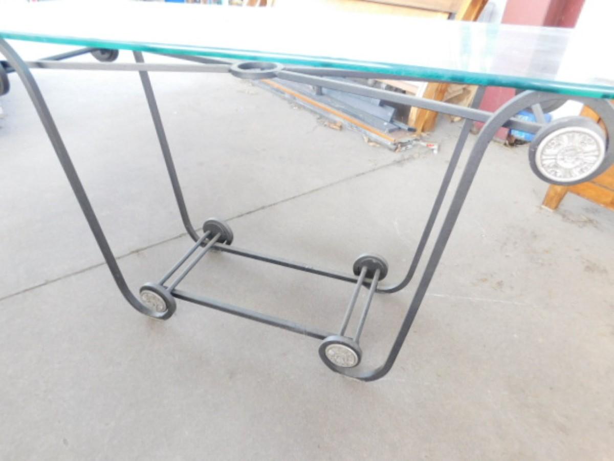 Contemporary Wrought Metal Frame Window Table with Thick Glass Top