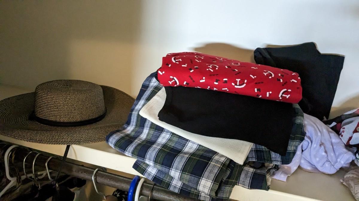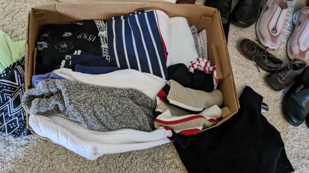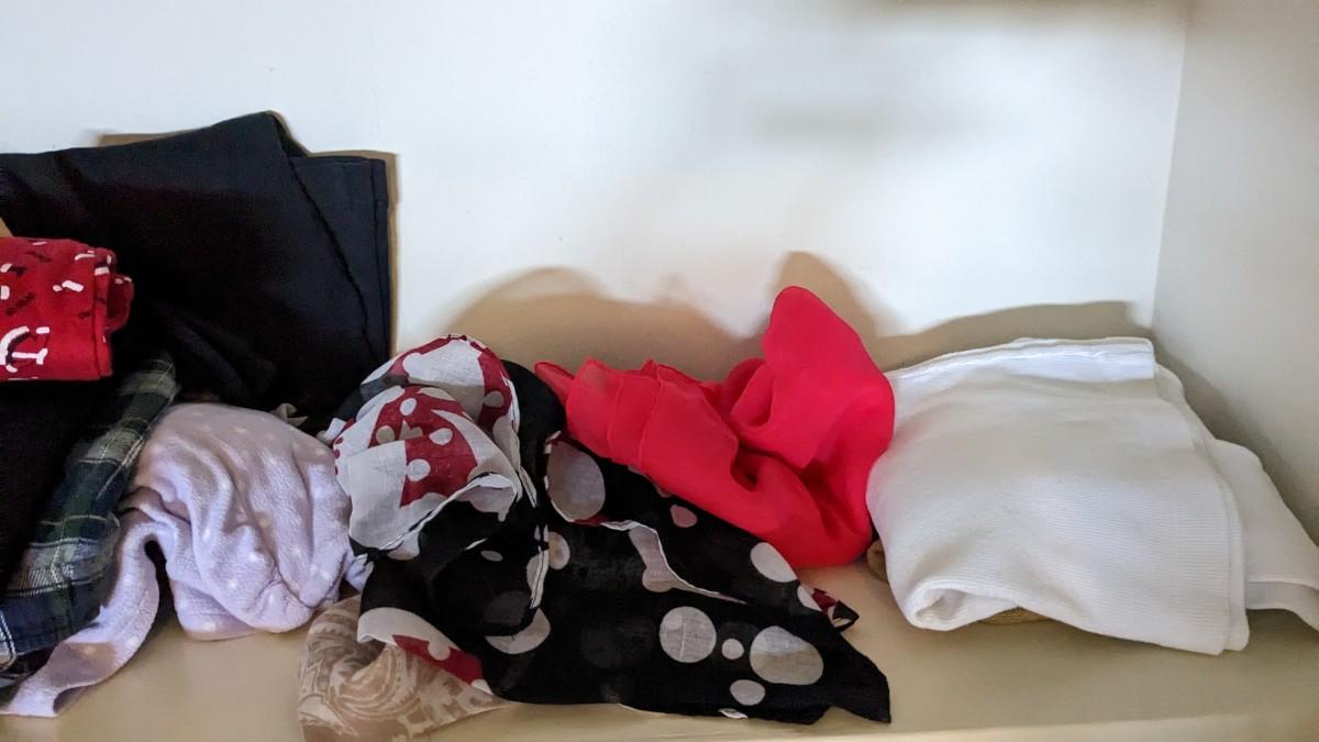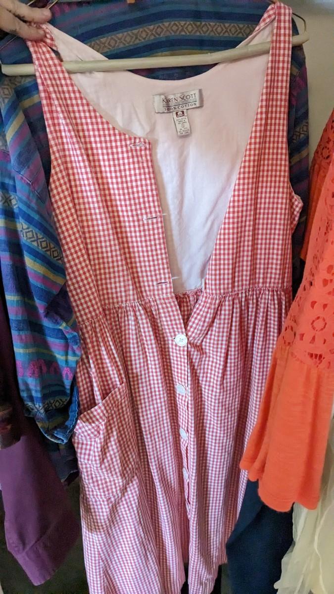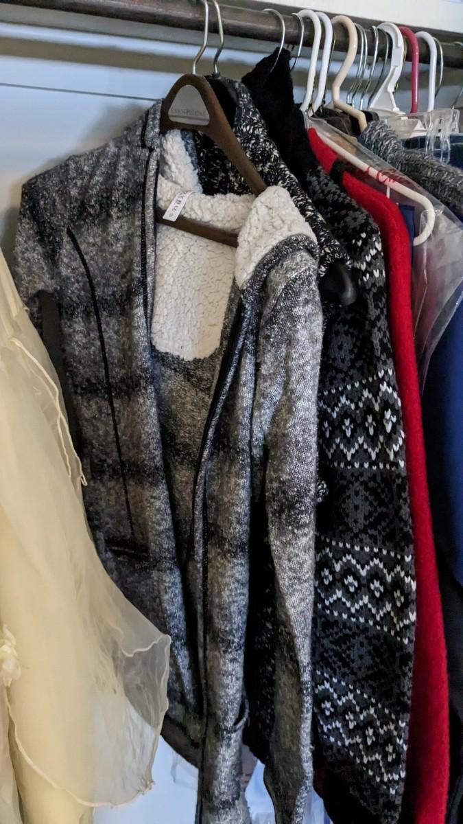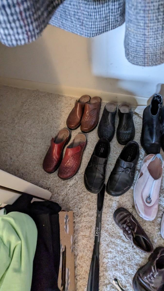 multi decade clothing, mainly women's Small or Medium with some men's XL as well. Includes nice women's shoes, size 7.5, and a beautiful pair of vintage leather kids shoes. Also includes some vintage men's clothing, a beautiful tie rack, nwt ladies scarves, a couple of toddler dresses, enough hangers for another closet, and SO MUCH more! No shipping. Winning bidder responsible for removal of all items. bdrm1