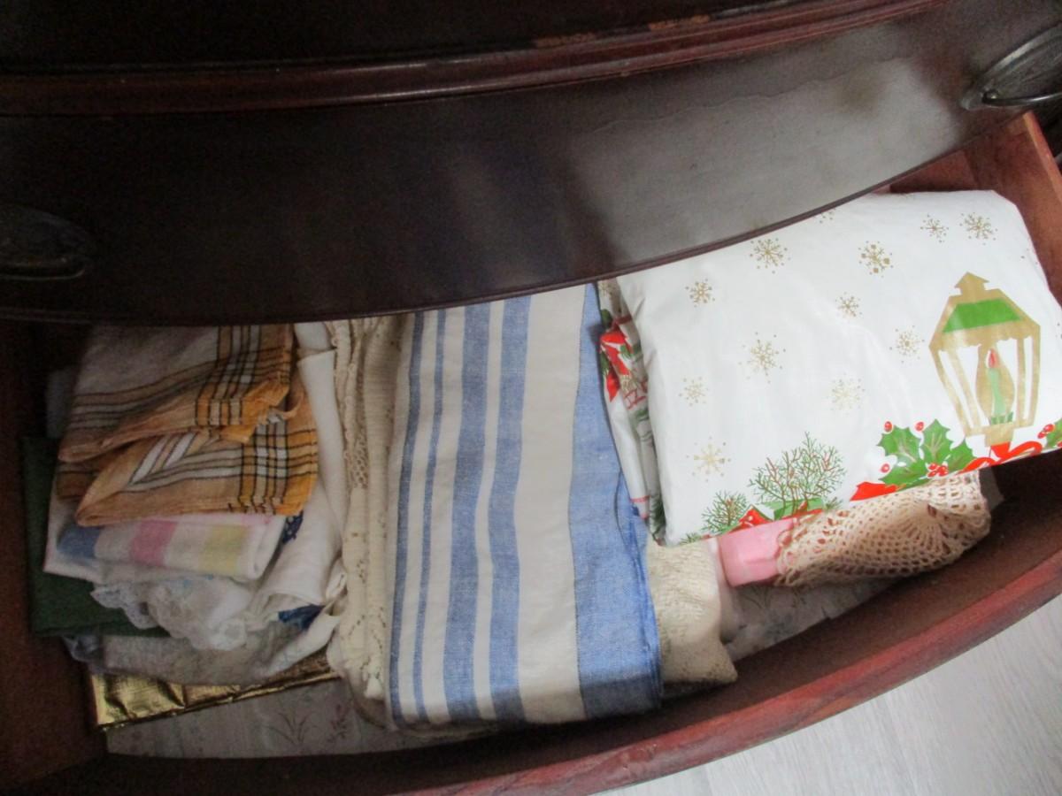 Contents Of Buffet Drawers includes Table Linens, Napkin Rings, and More- H