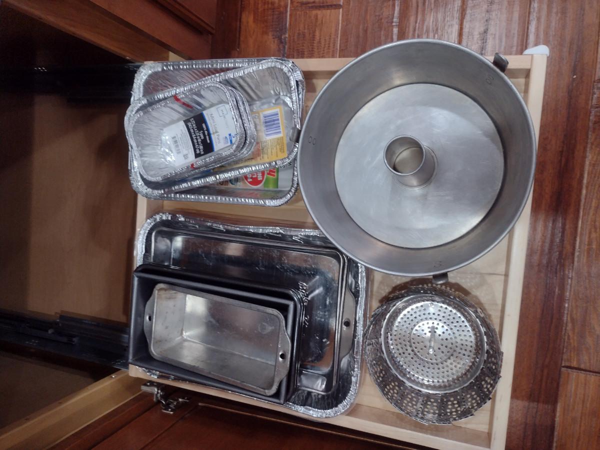 Contents of Cabinet- Assorted Bakeware. Please see all pictures for selection.
