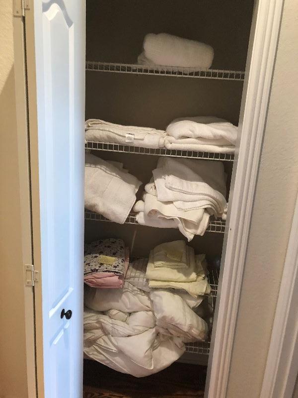 Thick white towels, down comforter (queen) sheets, pillowcases
