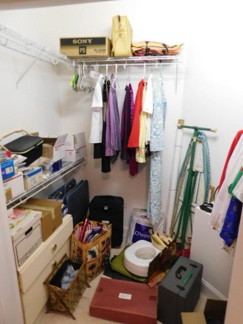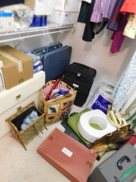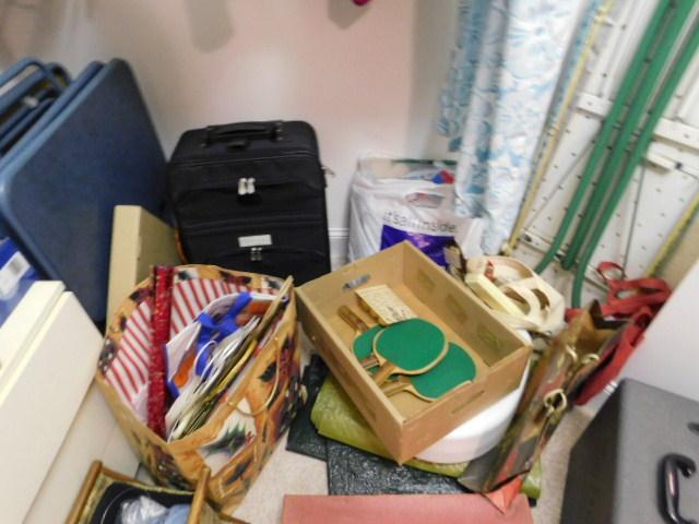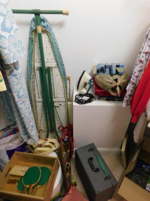 Contents of Entire Closet Full of Craft and Sewing Items Plus More including sewing machine, cross stitch, games, ironing board, etc.