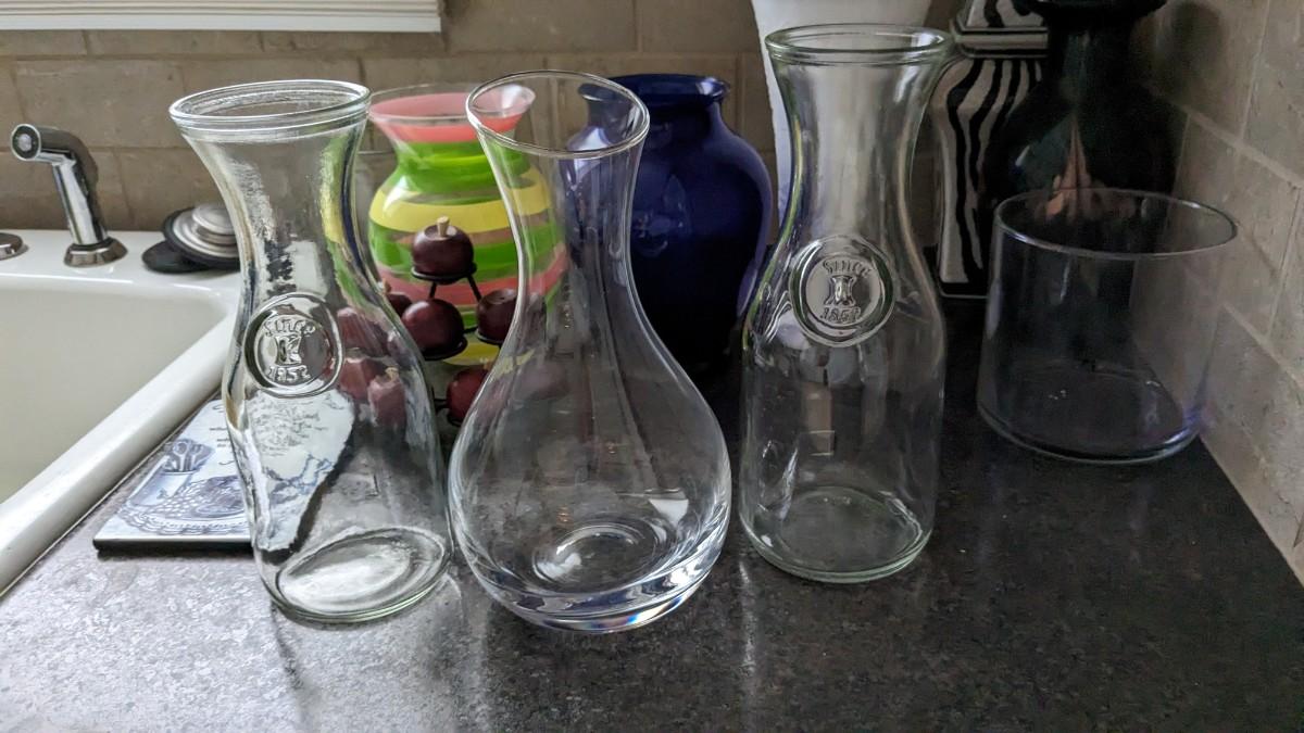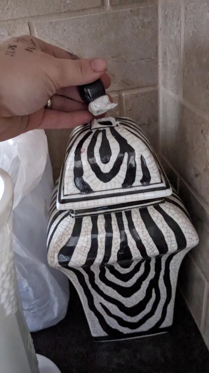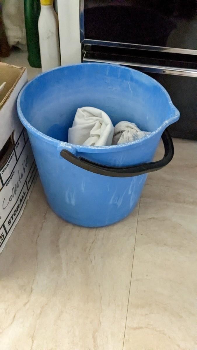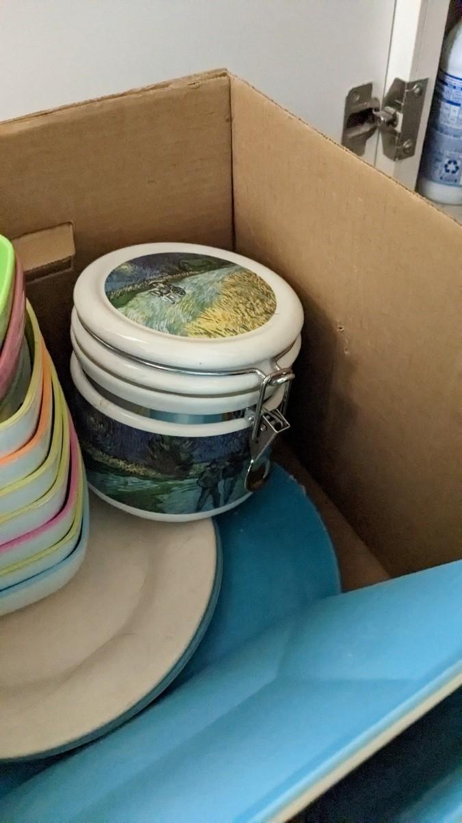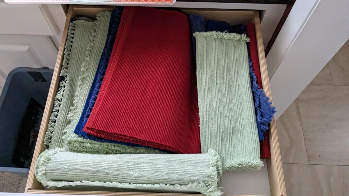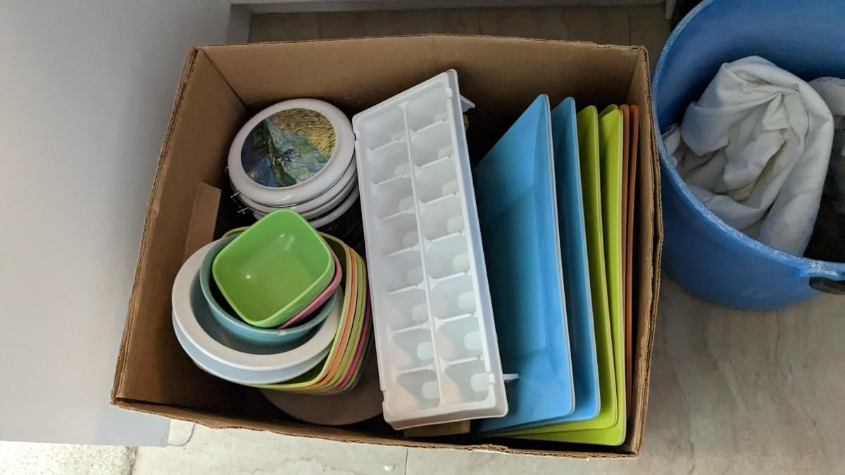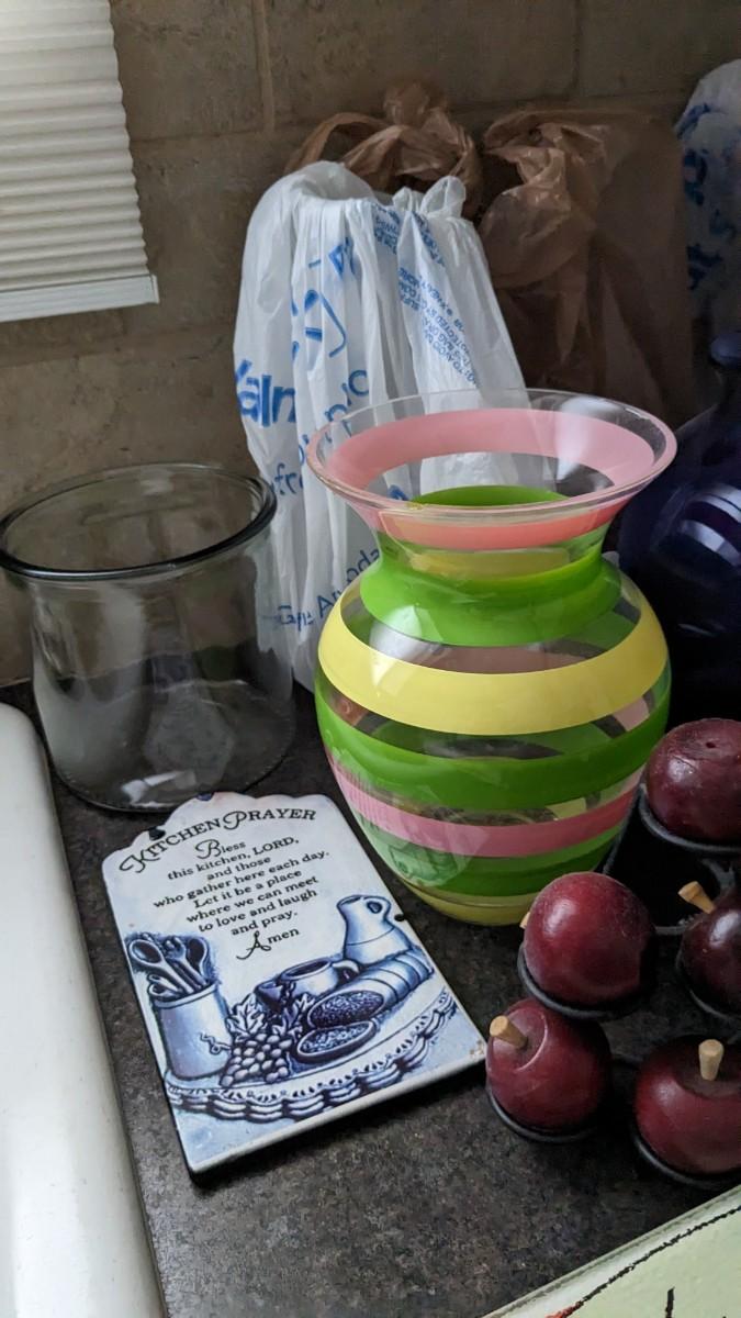 a great stack of new and barely used cleaners and household chemicals, a great catch all drawer full of golf balls, small tools, and various hardware. 2 drawers full of kitchen linens. A collection of vases, a zebra cookie jar with broken handle, a little kitchen decor, and box full of plastic dishes. No shipping. Winning bidder responsible for removal of all items.