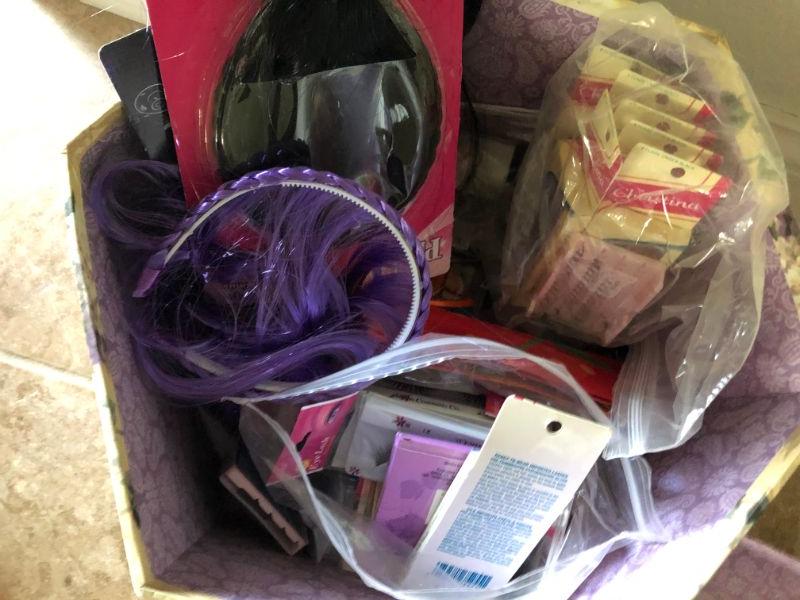 hair extensions, false eyelashes, mics.