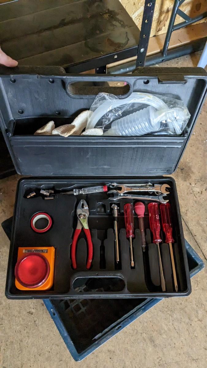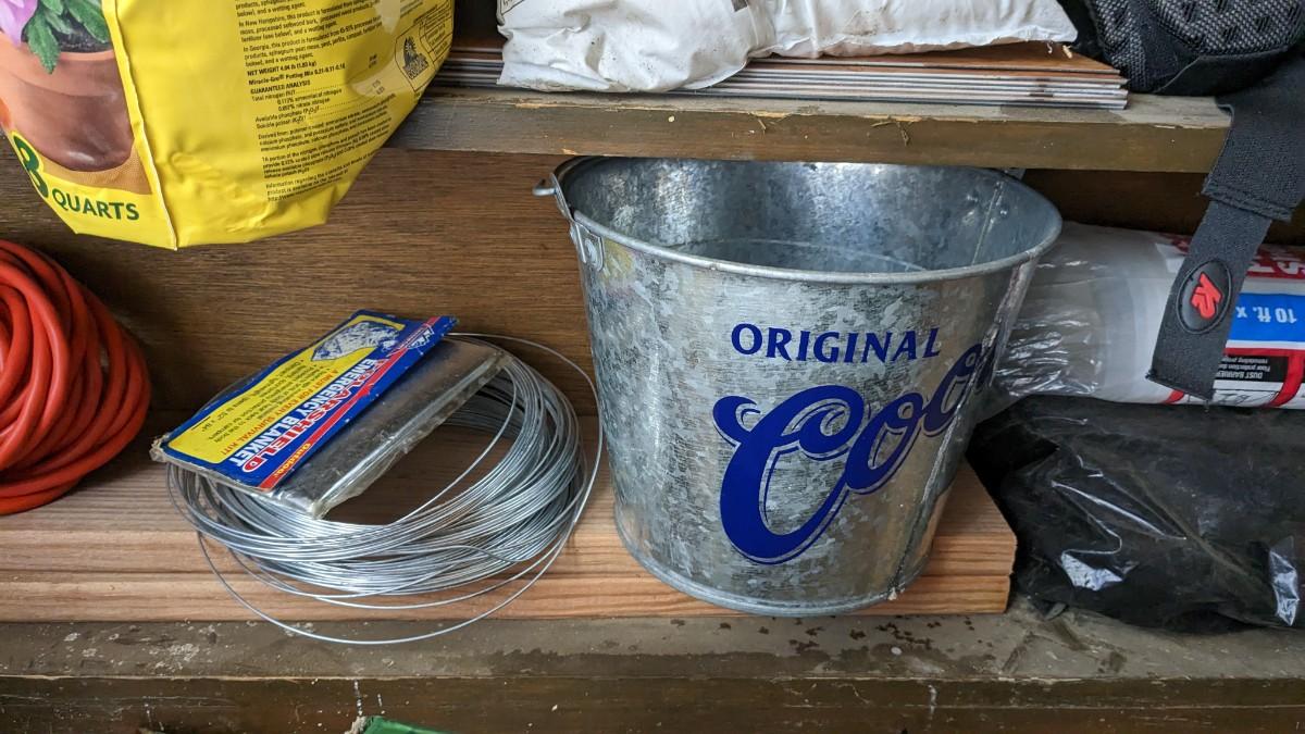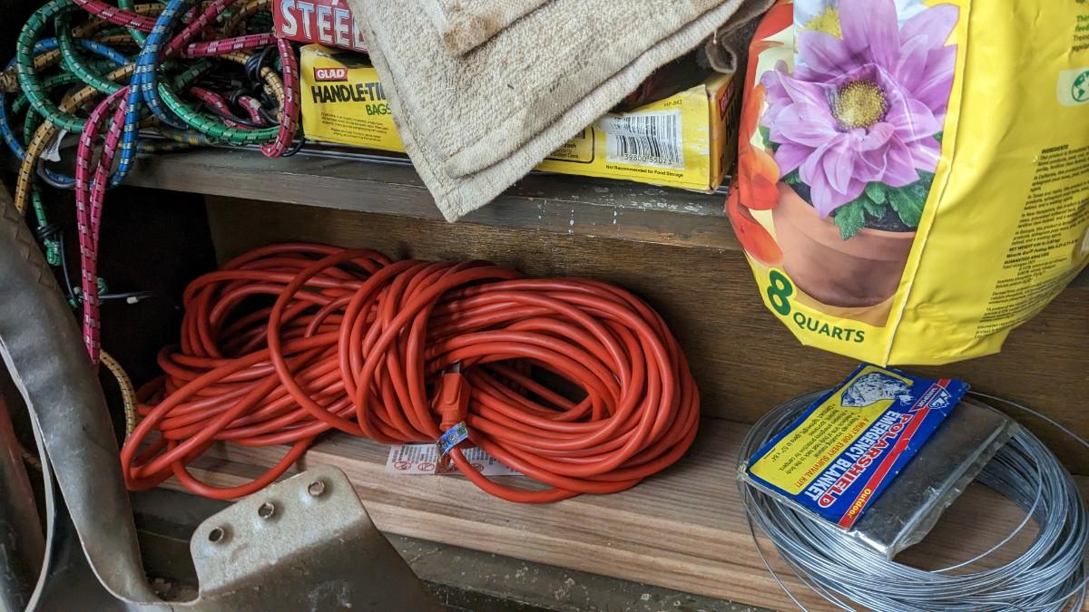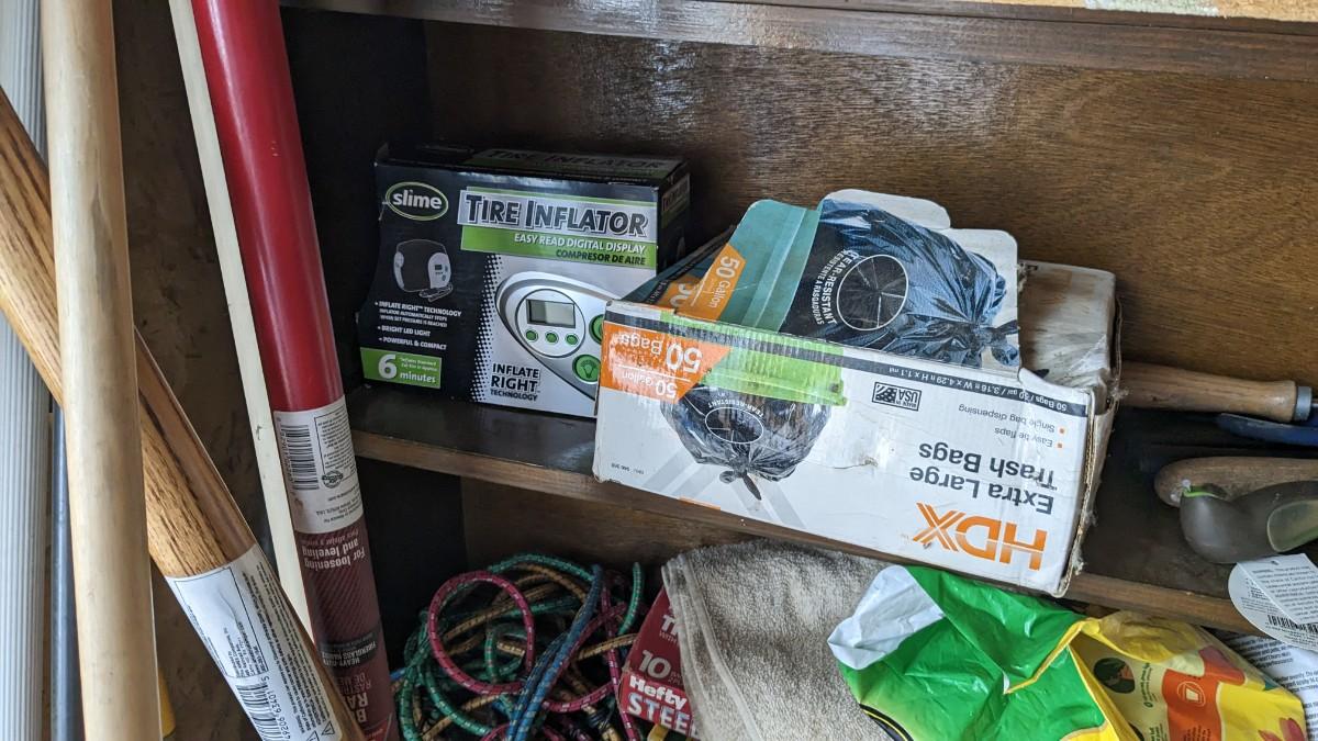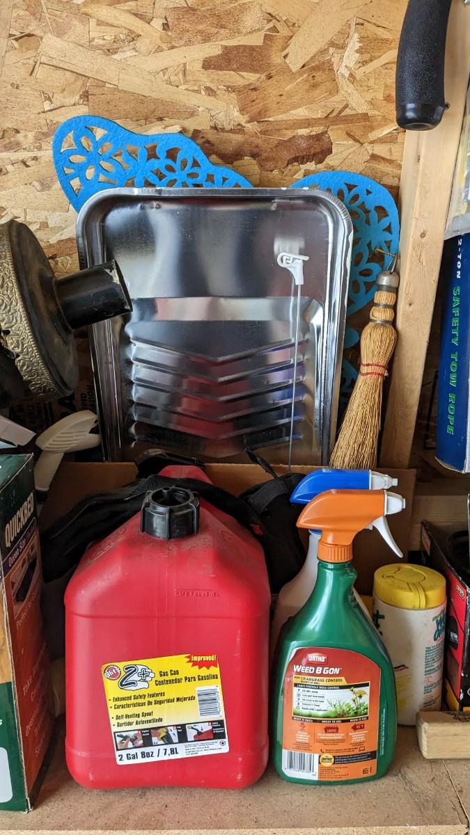 A stacked lot of almost all new, in-package items, yard tools, camping gear, and a super fun street light with federal eagle topper. Also includes 36.25"x11.5"x73 5/8" aluminum garage shelf and a couple of pieces of particle board. No shipping. winning bidder responsible for removal of all items. shed
