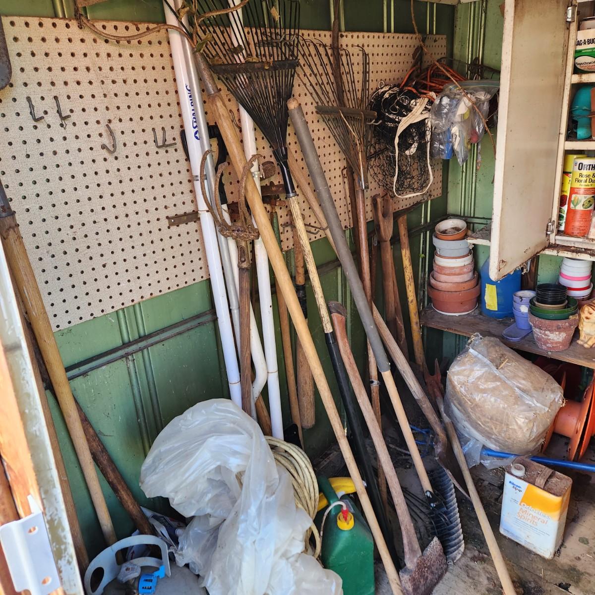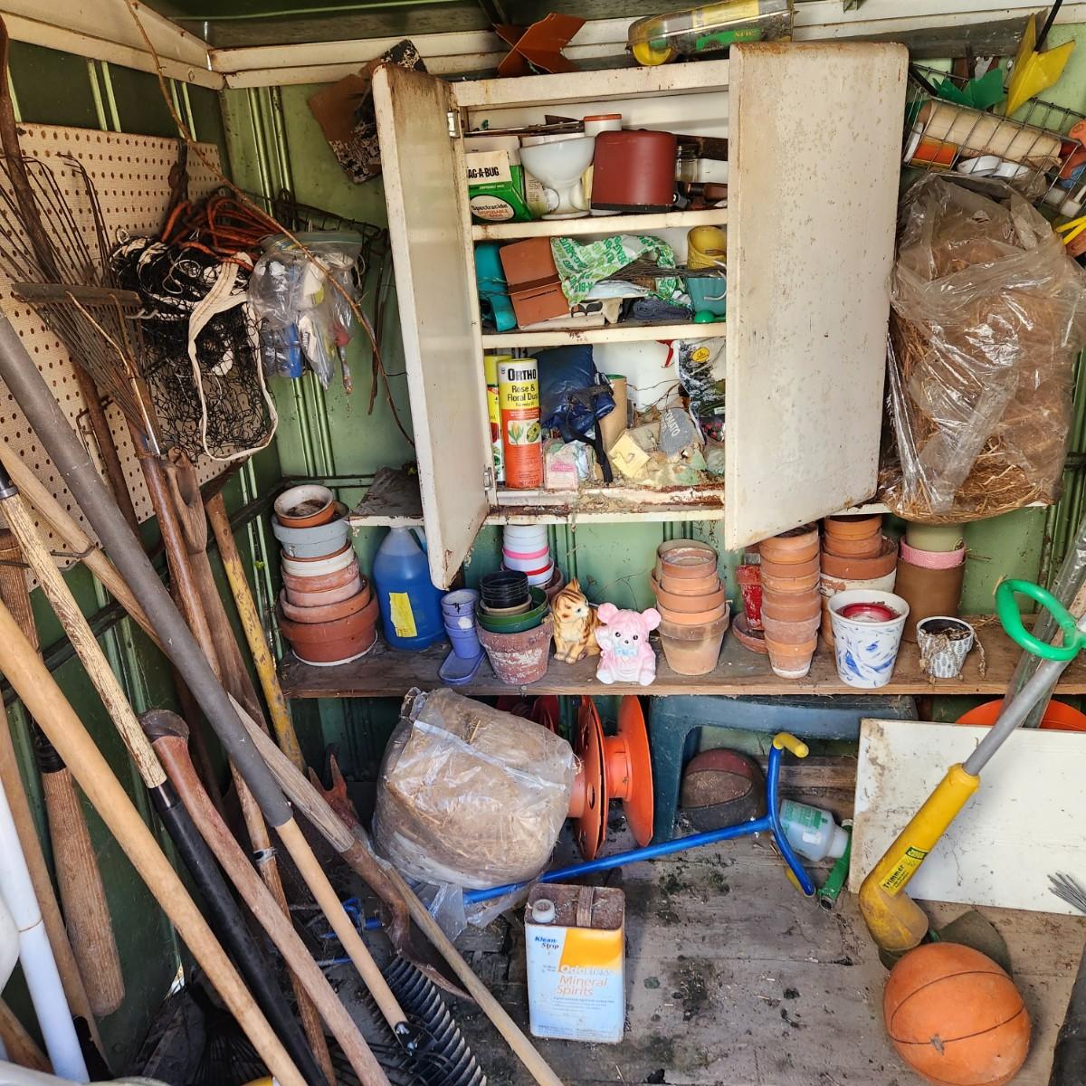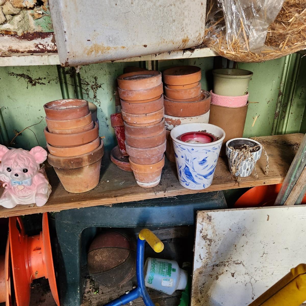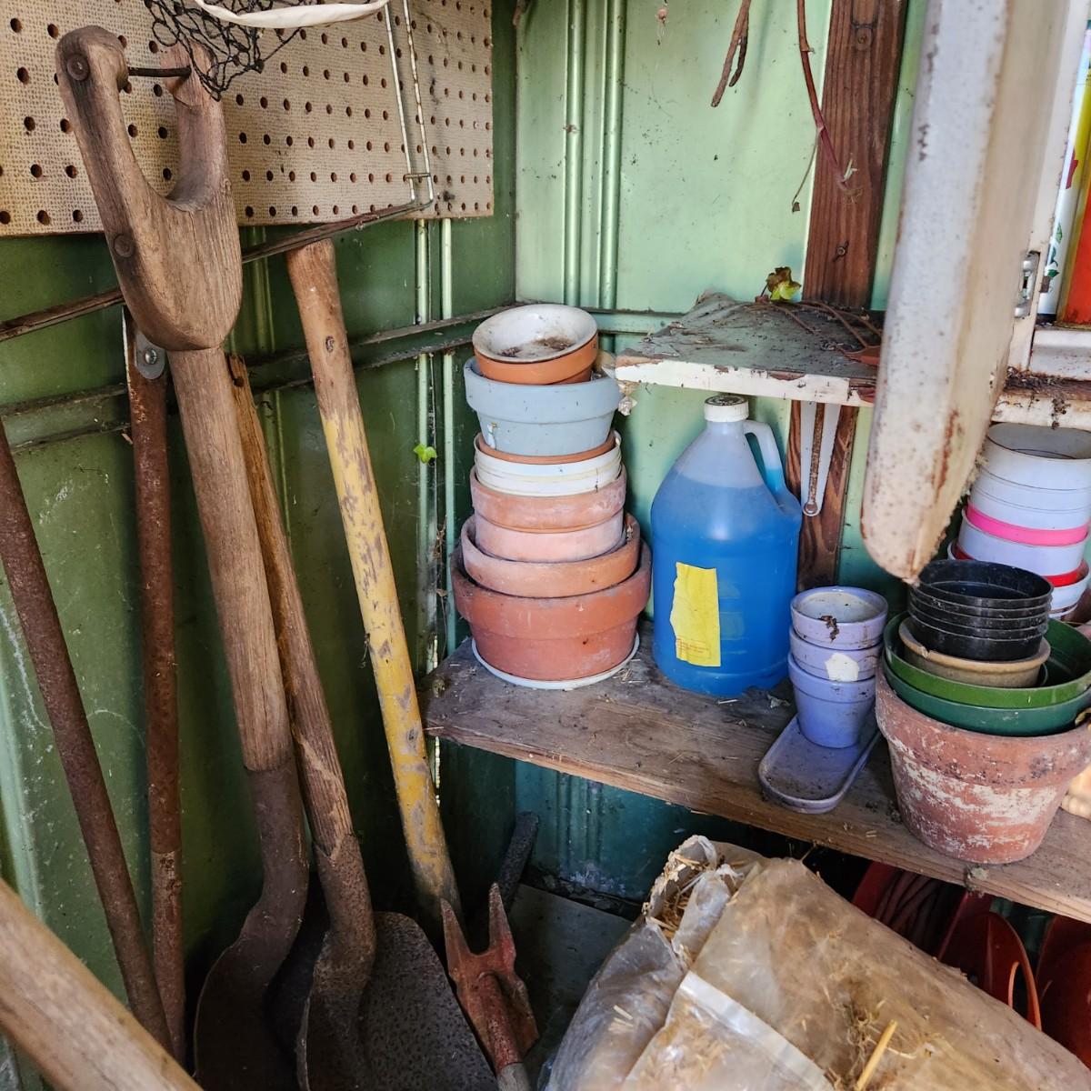 Contents of Outdoor Garden Shed Planter Pots, Garden Tools