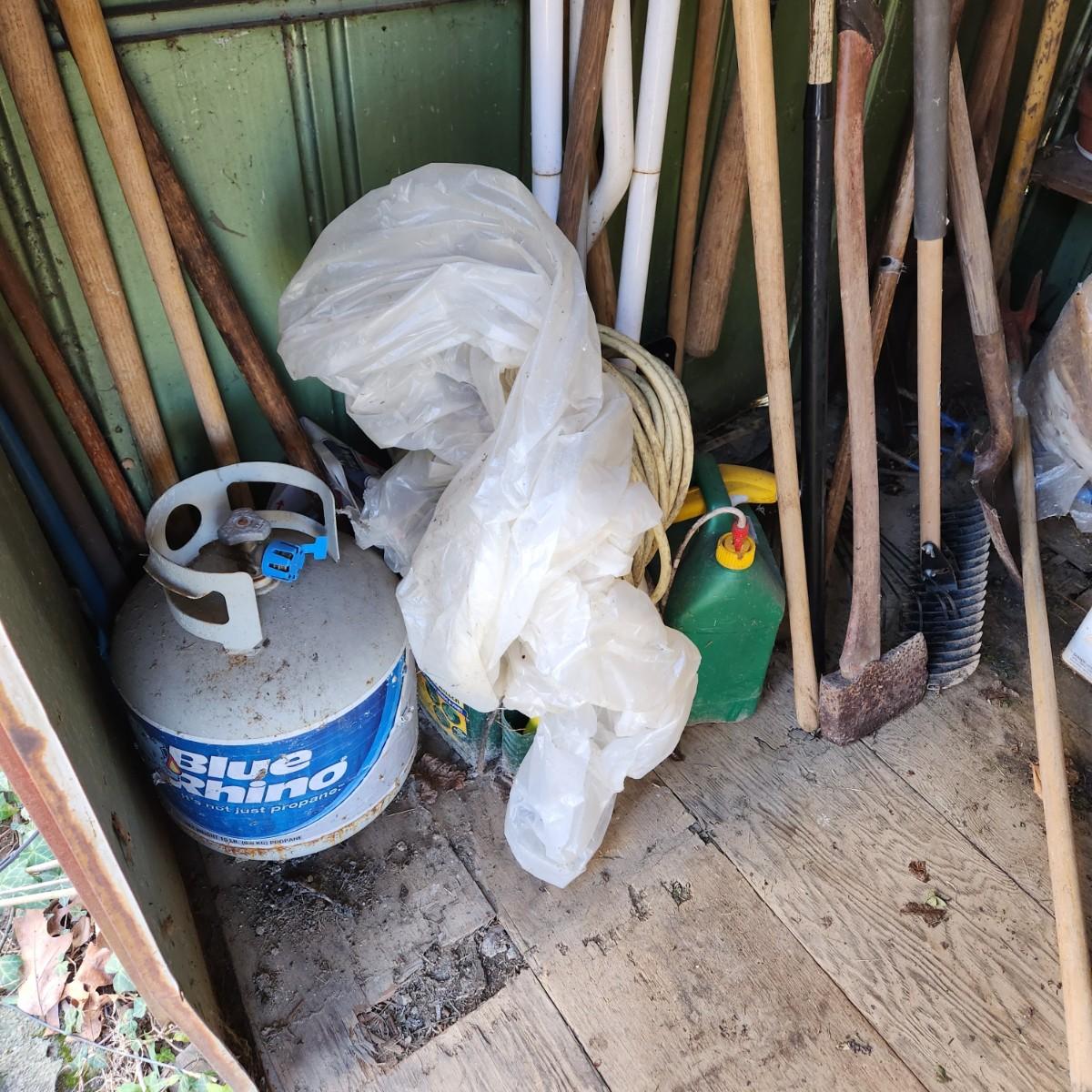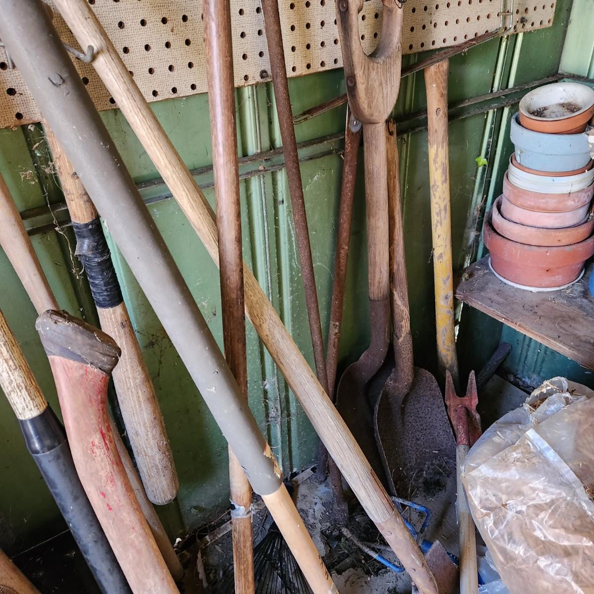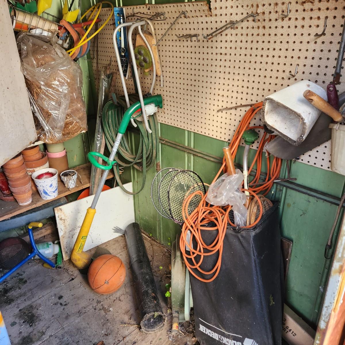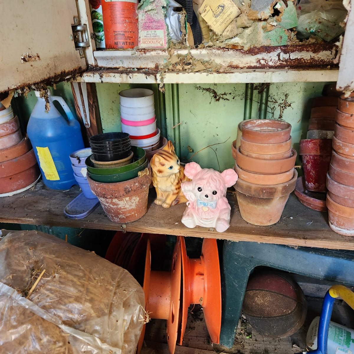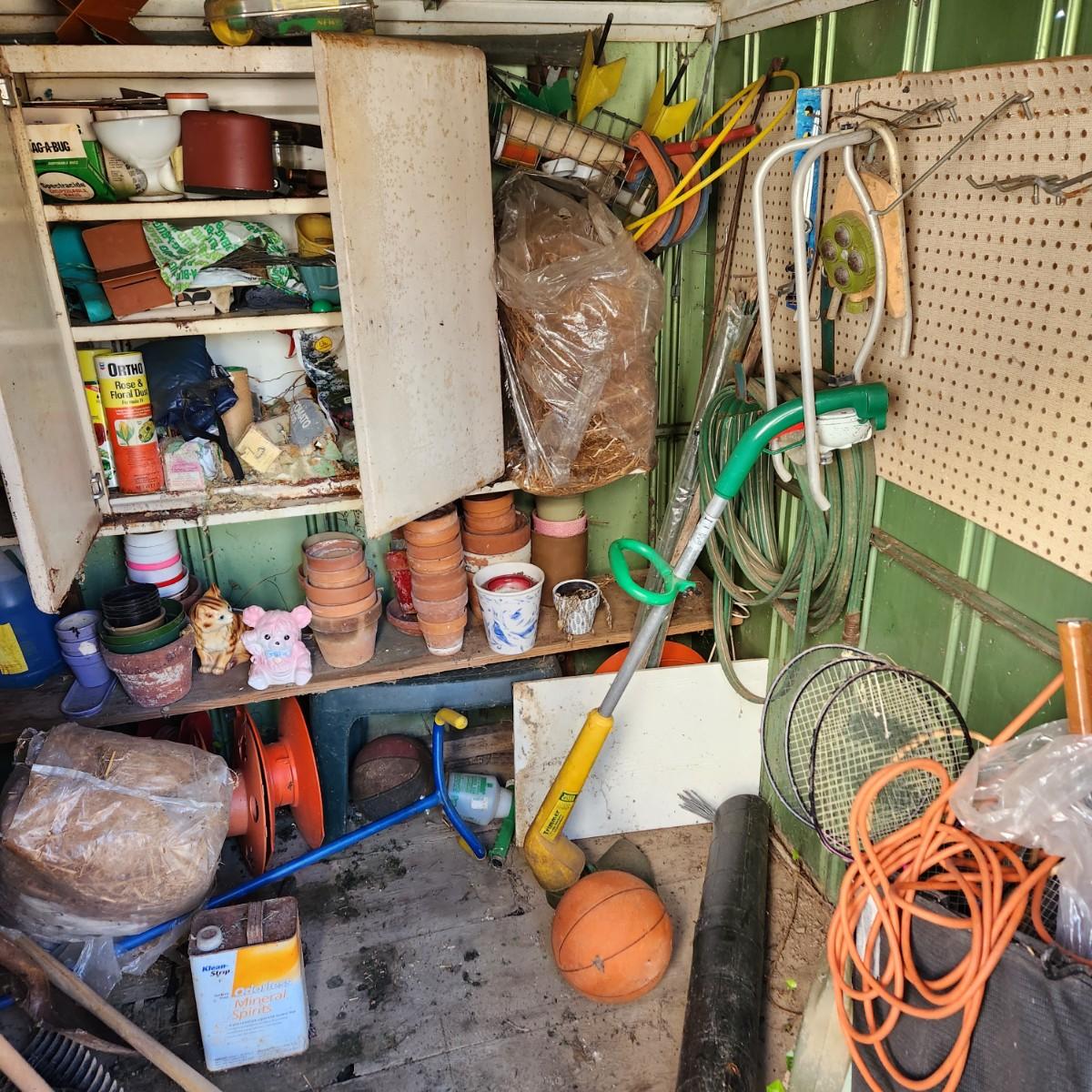 Contents of Outdoor Garden Shed Planter Pots, Garden Tools