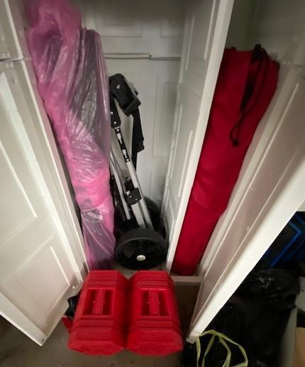 Includes Toto Super Electric Blower, garden supplies, bi fold cabinet, shelving.. Everything Except Tiles, Vents & Paint.