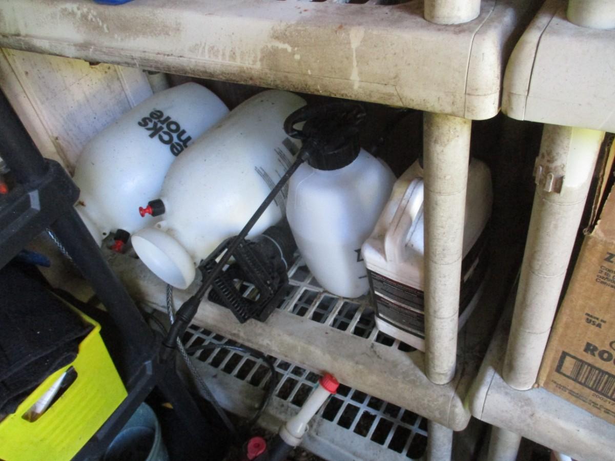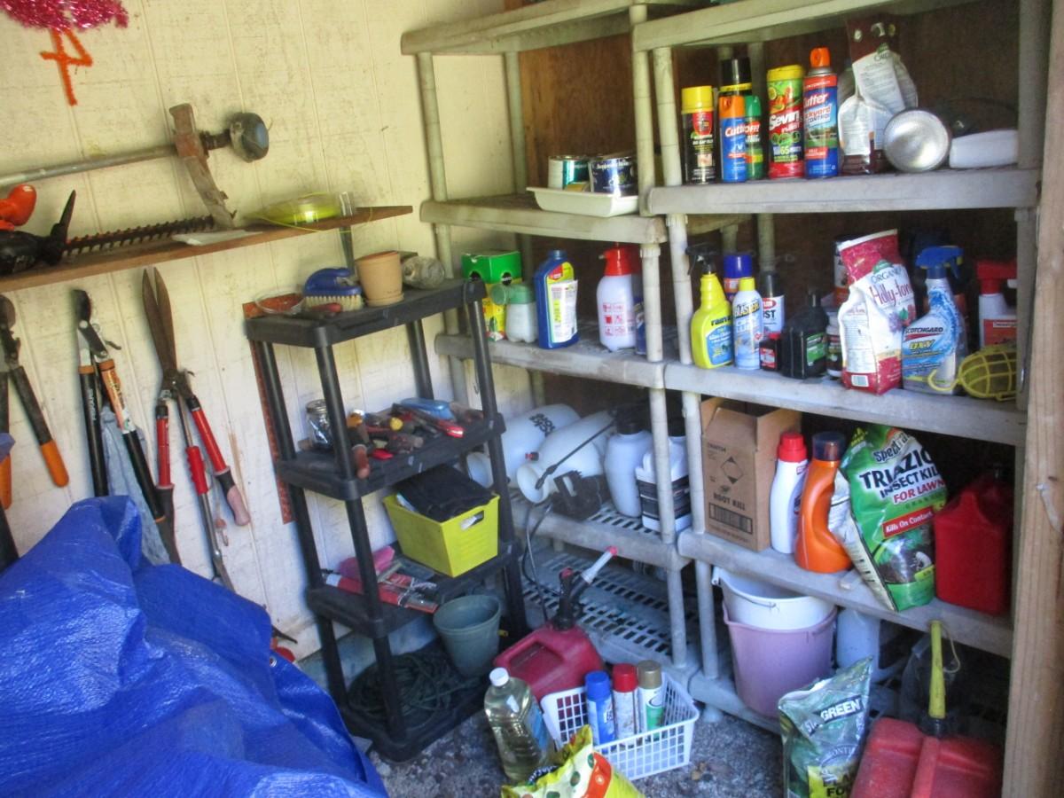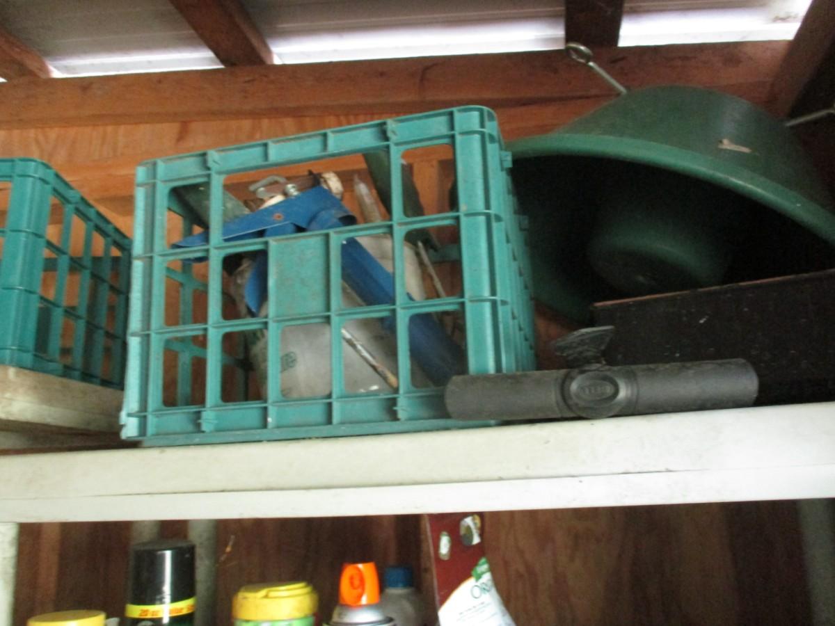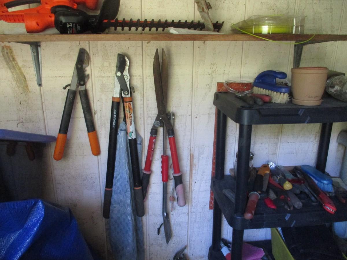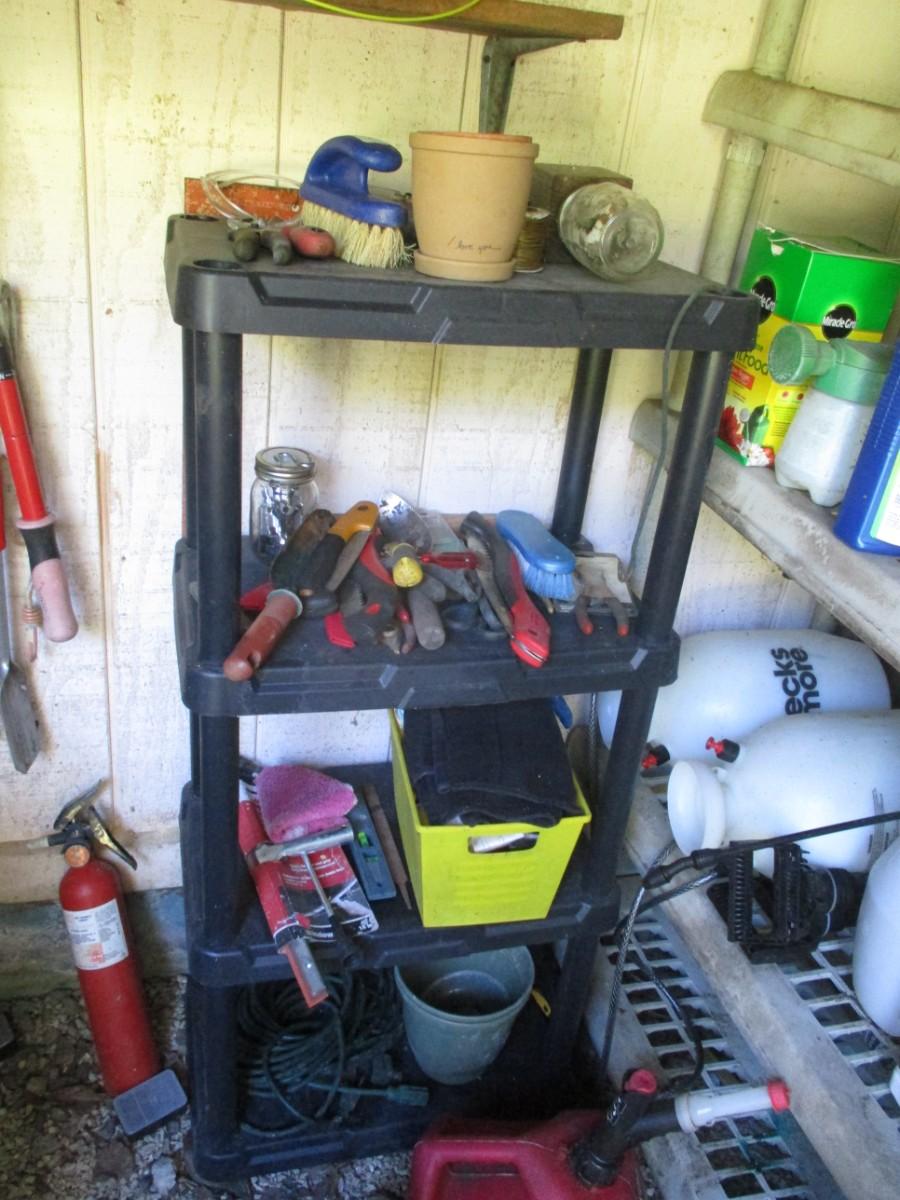 Shelving with Contents and Assortment of Hand Tools. Does not included the trimmer.