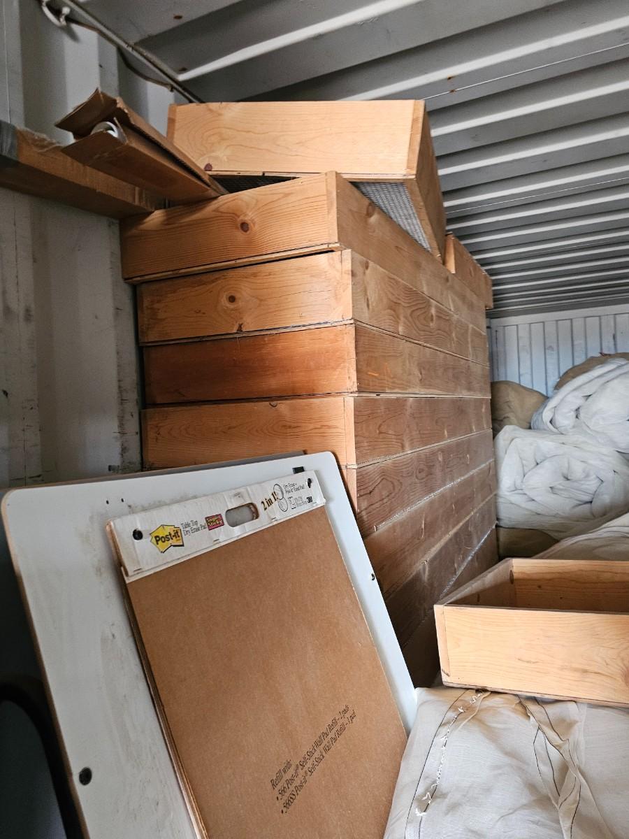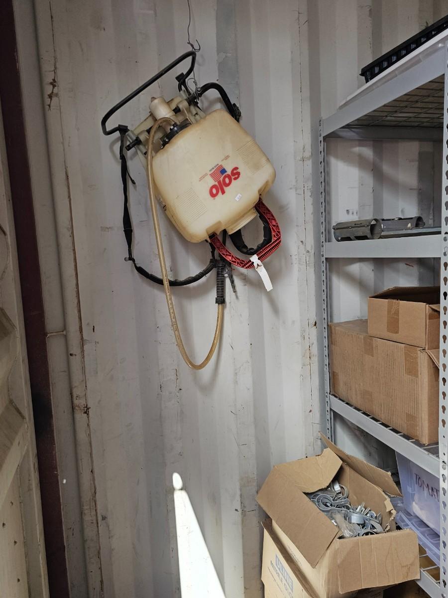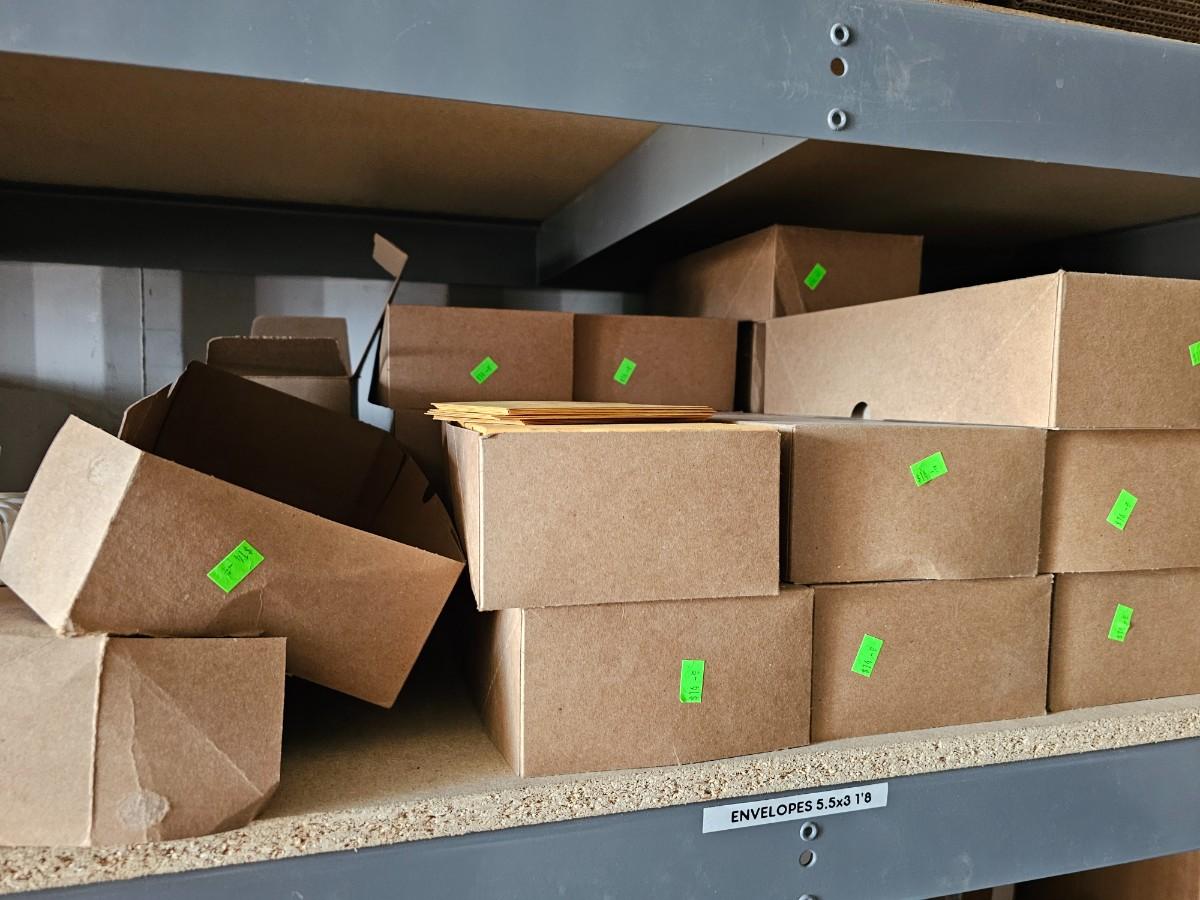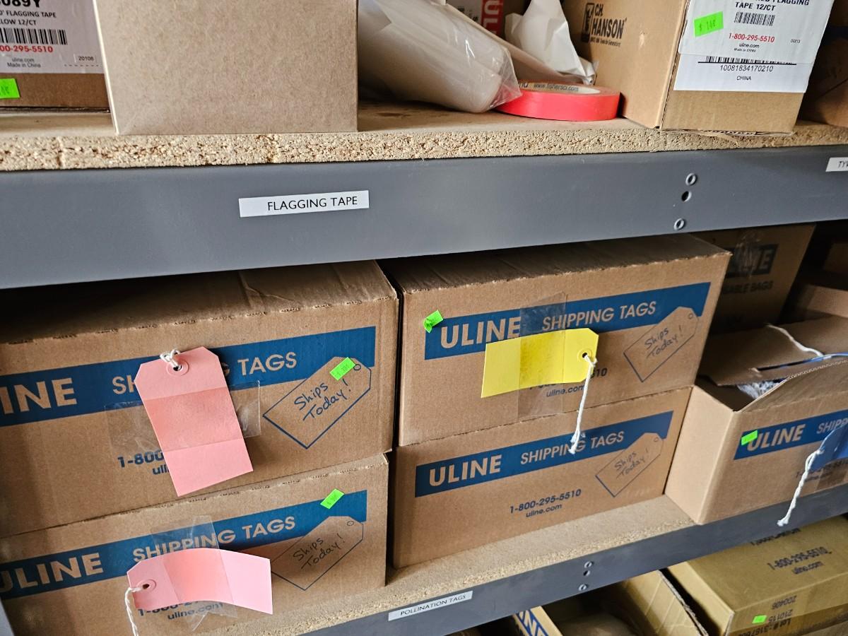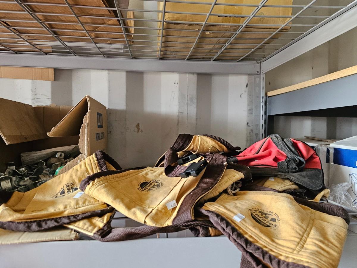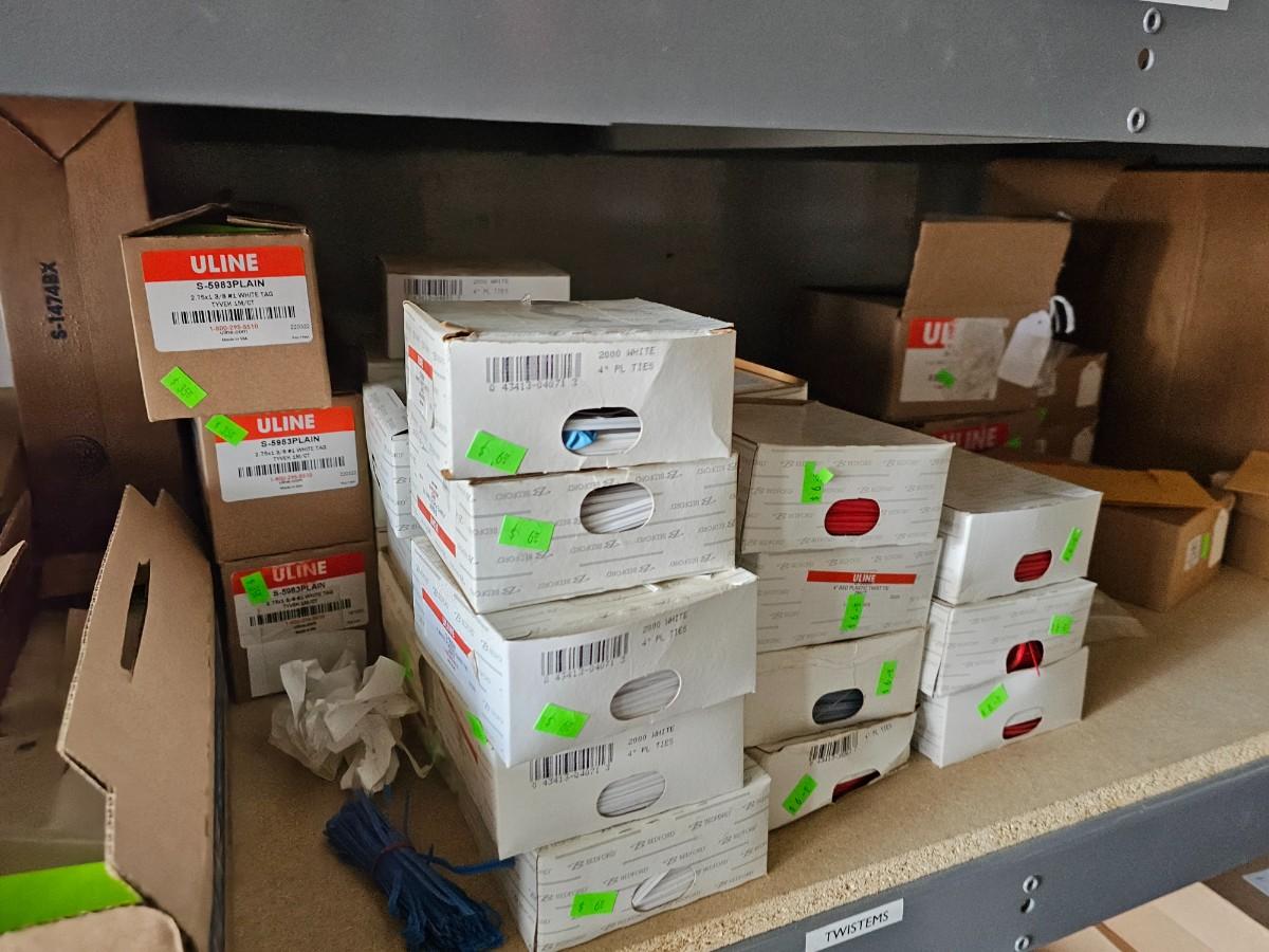 Container #3 tools, heavy metal shelving, fittings, storage bags, shipping boxes, Uline supplies,