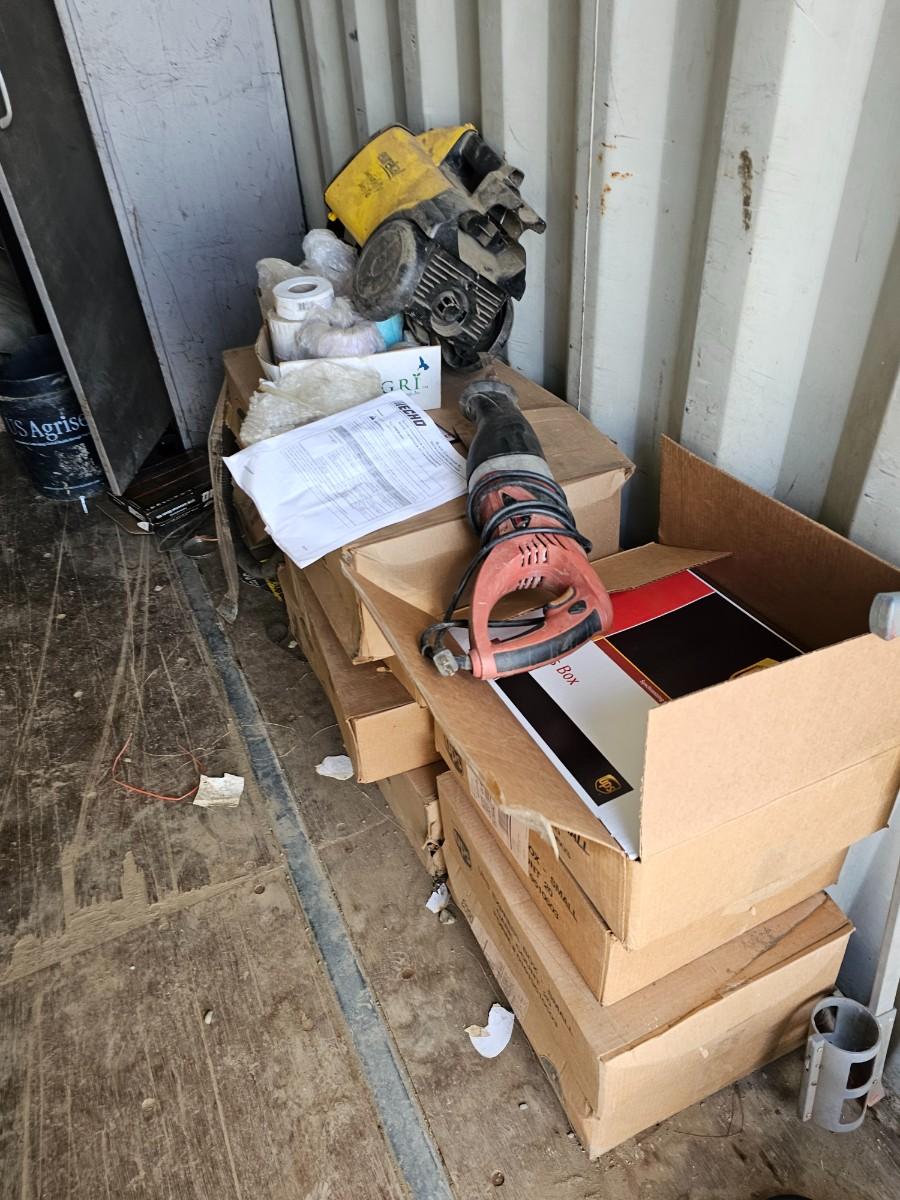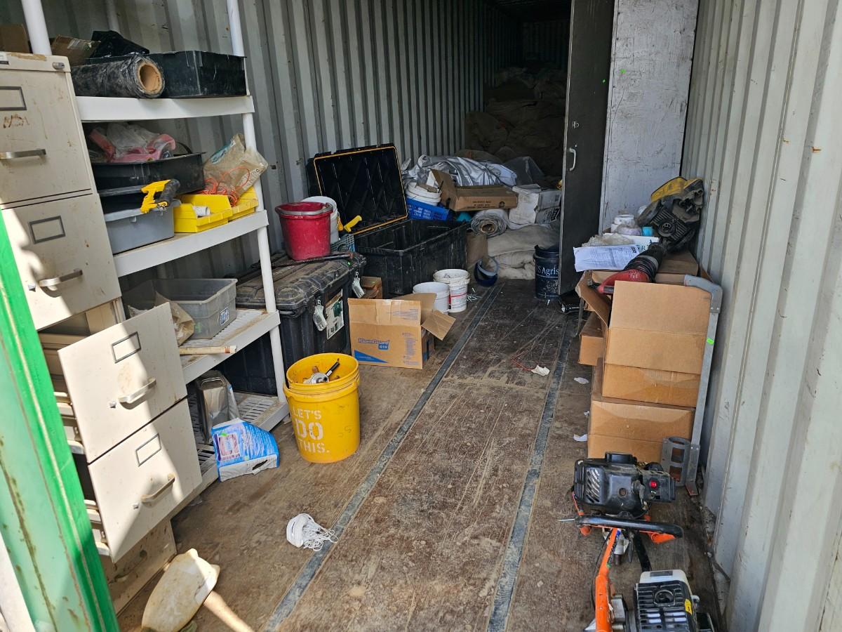Container #1 tools, shelving, cabinet, filing cabinet, plastic storage, etc